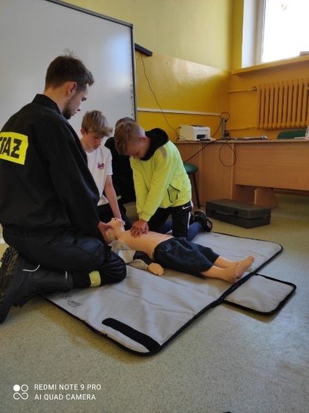 16 maja 2022 r. w Szkole Podstawowej nr 4 Zespołu Placówek Oświatowych w Mławie odbyło się spotkanie strażaków JRG Mława oraz OSP Mława z uczniami klasy 7. Na spotkaniu omówiono zasady pierwszej pomocy oraz bezpieczeństwa pożarowego. Interesująca tematyka spotkania zachęciła uczniów do czynnego uczestnictwa w realizowanych ćwiczeniach praktycznych z zakresu pierwszej pomocy.