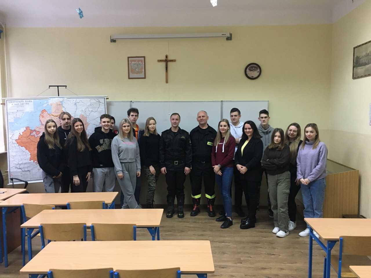 Funkcjonariusze Komendy Powiatowej Państwowej Straży Pożarnej w Mławie w ramach doradztwa zawodowego spotkali się z uczniami klas IV Liceum Ogólnokształcącego im. Stanisława Wyspiańskiego w Mławie.