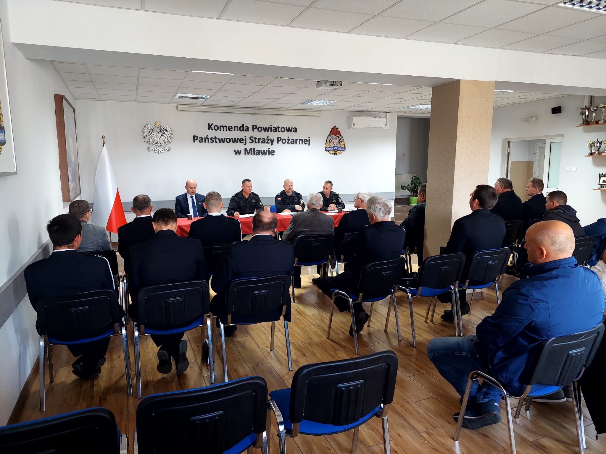 W piątek, 14 października 2022 roku w Komendzie Powiatowej Państwowej Straży Pożarnej w Mławie Zastępca Mazowieckiego Komendanta Wojewódzkiego PSP st. bryg. Tomasz Cybul w towarzystwie Komendanta Powiatowego PSP w Mławie bryg. Mirosława Wójcika spotkał się z przedstawicielami jednostek OSP z terenu powiatu mławskiego.