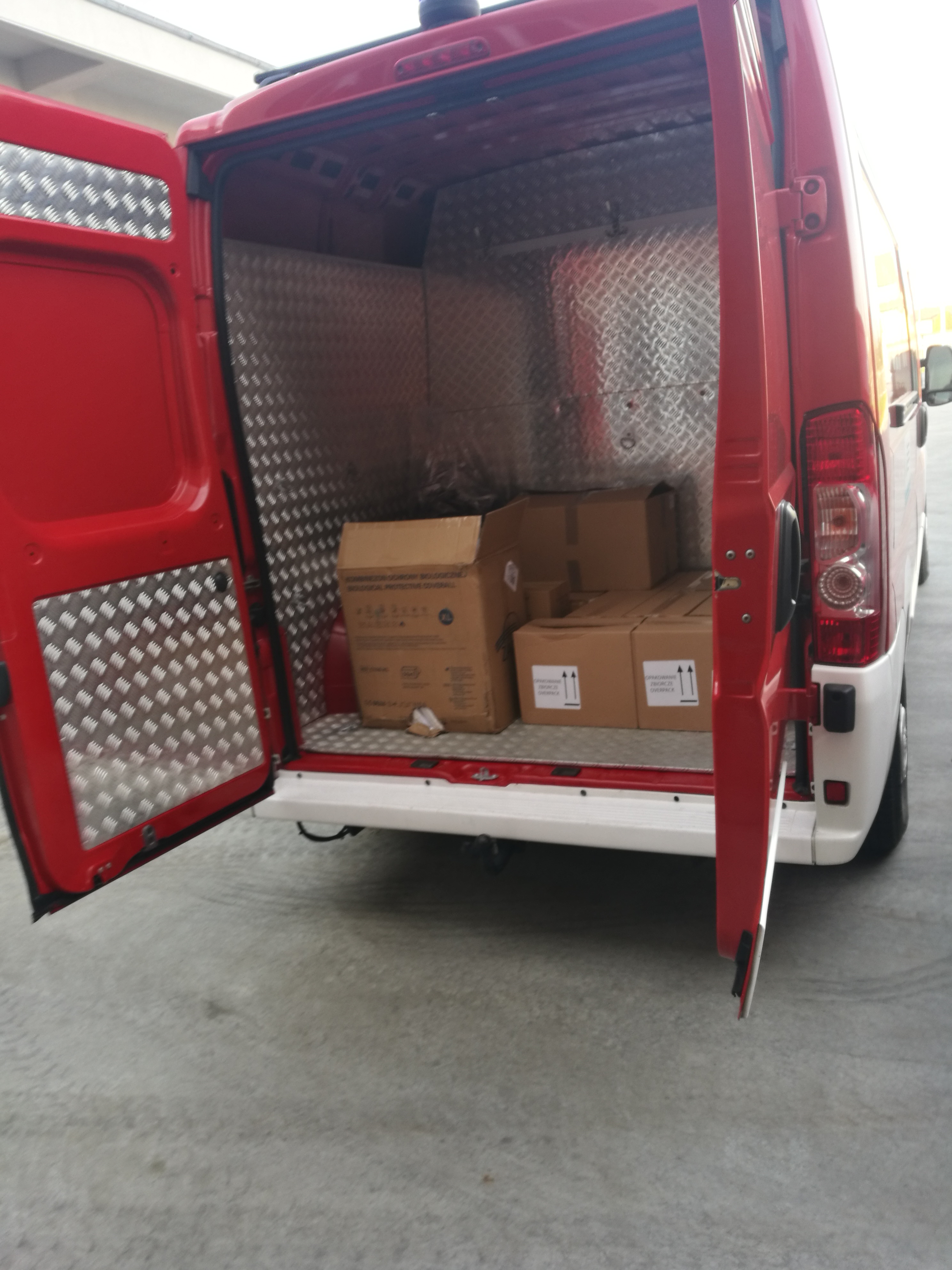 Komenda Powiatowa Państwowej Straży Pożarnej w Mławie odebrała z JRG nr 2 w Płocku: maski jednorazowe, maski FFP2, płyny do rąk i powierzchni, gogle, przyłbice, kombinezony jednorazowe, rękawiczki lateksowe i nitrylowe, fartuchy chirurgiczne, ochraniacze na buty oraz czepki ochronne.