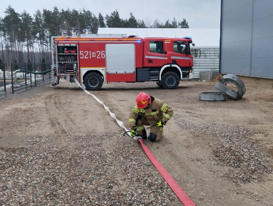 Ćwiczenia przebiegły sprawnie, a wszystkie postawione cele zostały osiągnięte. Ostatnim elementem ćwiczeń było obejście obiektu przez uczestniczących strażaków, mające na celu zapoznanie się z topografią zakładu, identyfikację potencjalnych zagrożeń oraz analizę dostępnego wyposażenia przeciwpożarowego, co miało na celu podniesienie efektywności prowadzonych działań ratowniczo-gaśniczych.