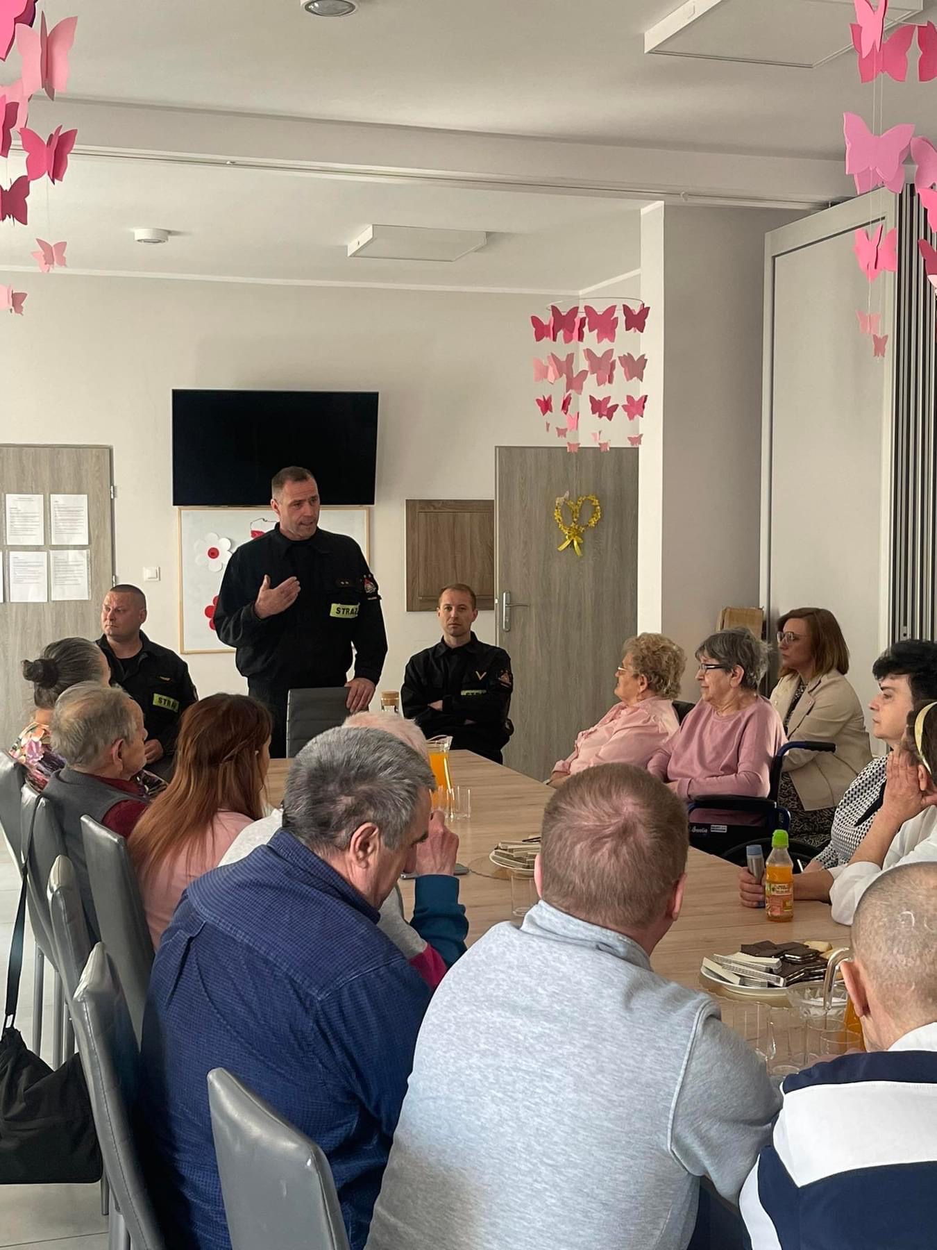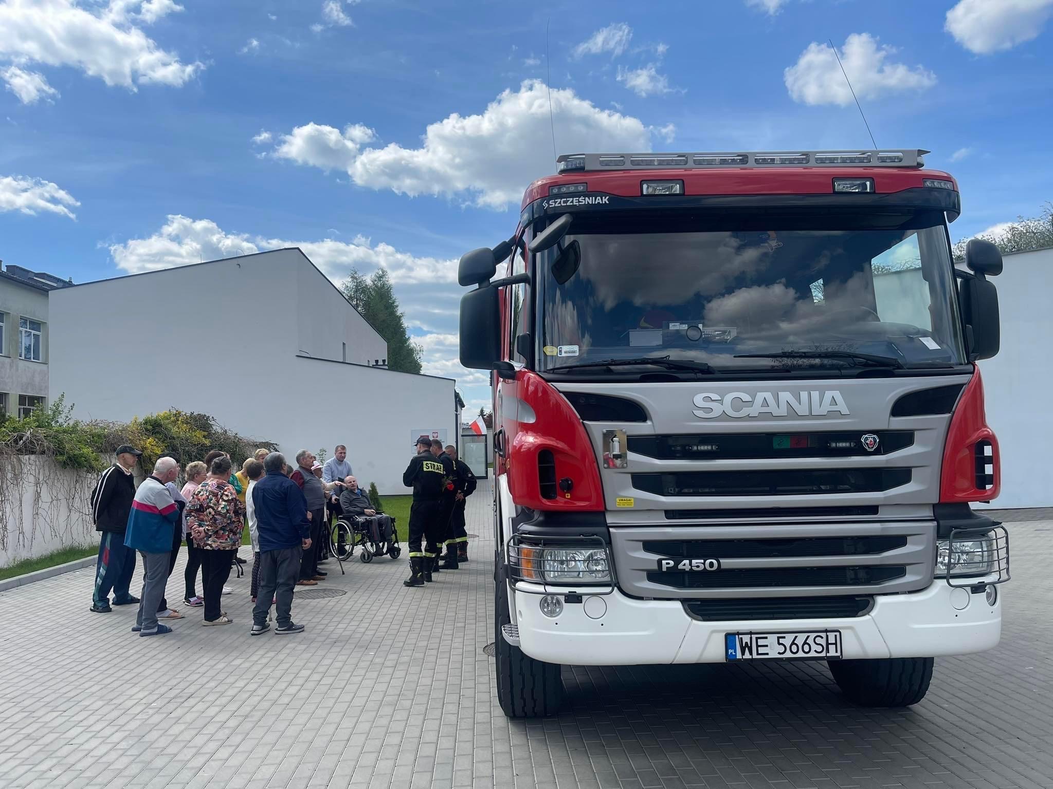 Strażacy z wizytą w Powiatowym Centrum Opiekuńczo Mieszkaniowym w Mławie.