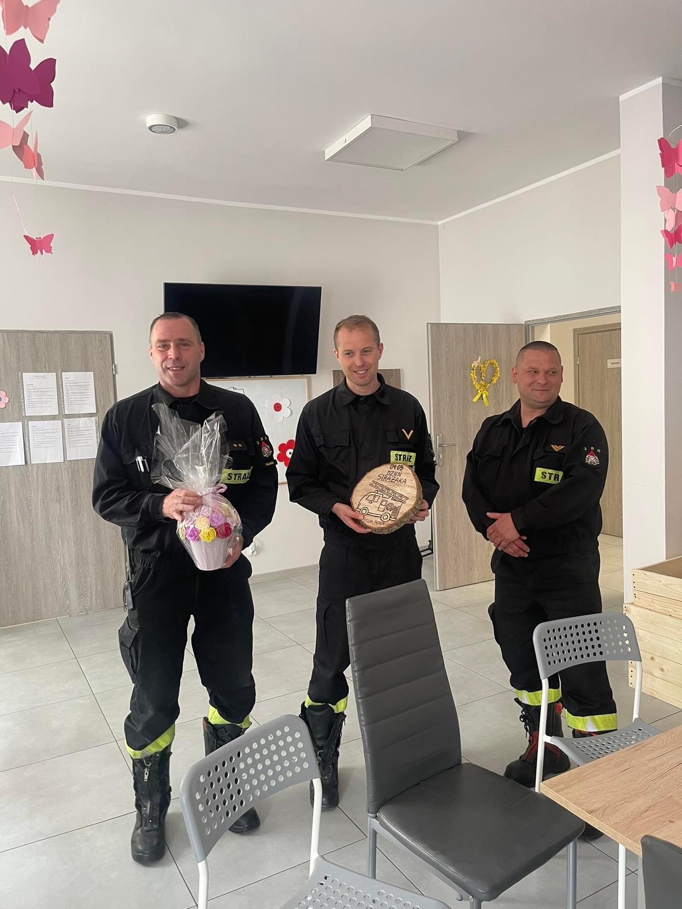 Dnia 4 maja br. strażacy z KP PSP w Mławie odwiedzili Powiatowe Centrum Opiekuńczo Mieszkaniowe w Mławie. Uczestnicy spotkania podczas miłej i przyjaznej rozmowy z zaciekawieniem słuchali i zadawali pytania odnośnie tego zawodu i ryzyka z nim związanego, jak rownież innymi problemami, jakie nurtują ludzi starszych, a mają bezpośredni wpływ na ich bezpieczeństwo. Uczestnicy mieli również okazję zobaczyć wyposażenie wozu strażackiego, dowiedzieli się o czynnościach i obowiązkach wykonywanych przez Państwową Straż Pożarną. W ramach podziękowań strażacy otrzymali upominki od uczestników spotkania.