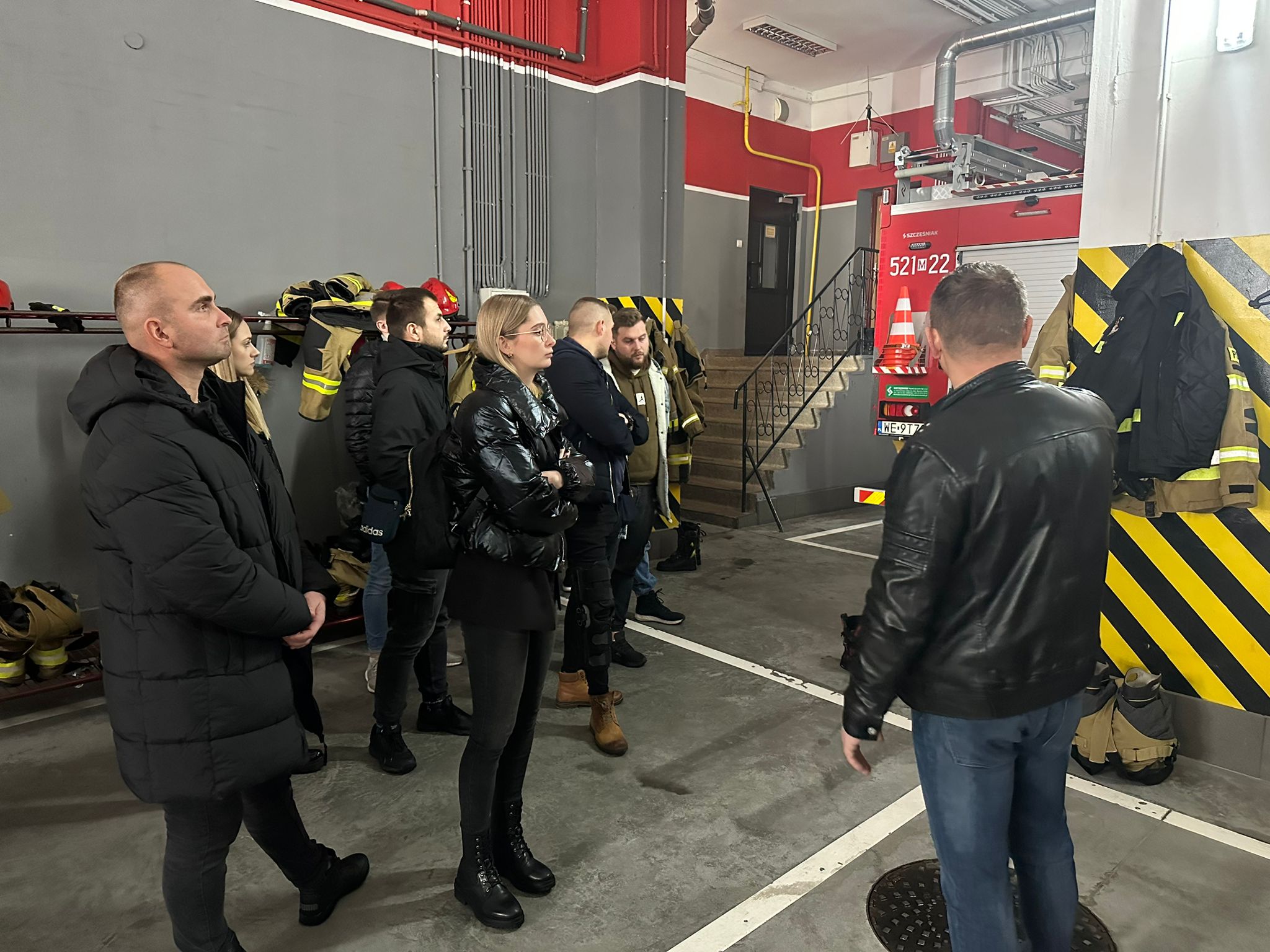 mł. bryg. Jacka Dryll. Studenci zapoznali się ze strukturą organizacyjną mławskiej komendy, funkcjonowaniem wydziału operacyjnego oraz stanowiska kierowania komendanta powiatowego PSP w Mławie. Ponadto, słuchacze poznali zasady alarmowania i dysponowania sił i środków do zdarzeń, zasady korespondencji radiowej, a także wyposażenie, jakim dysponują strażacy biorący udział w działaniach ratowniczo-gaśniczych. W gronie studentów znaleźli się policjanci i żołnierze, co stworzyło doskonałą okazję do wymiany doświadczeń, porównania procedur, organizacji łączności oraz funkcjonowania służb mundurowych.