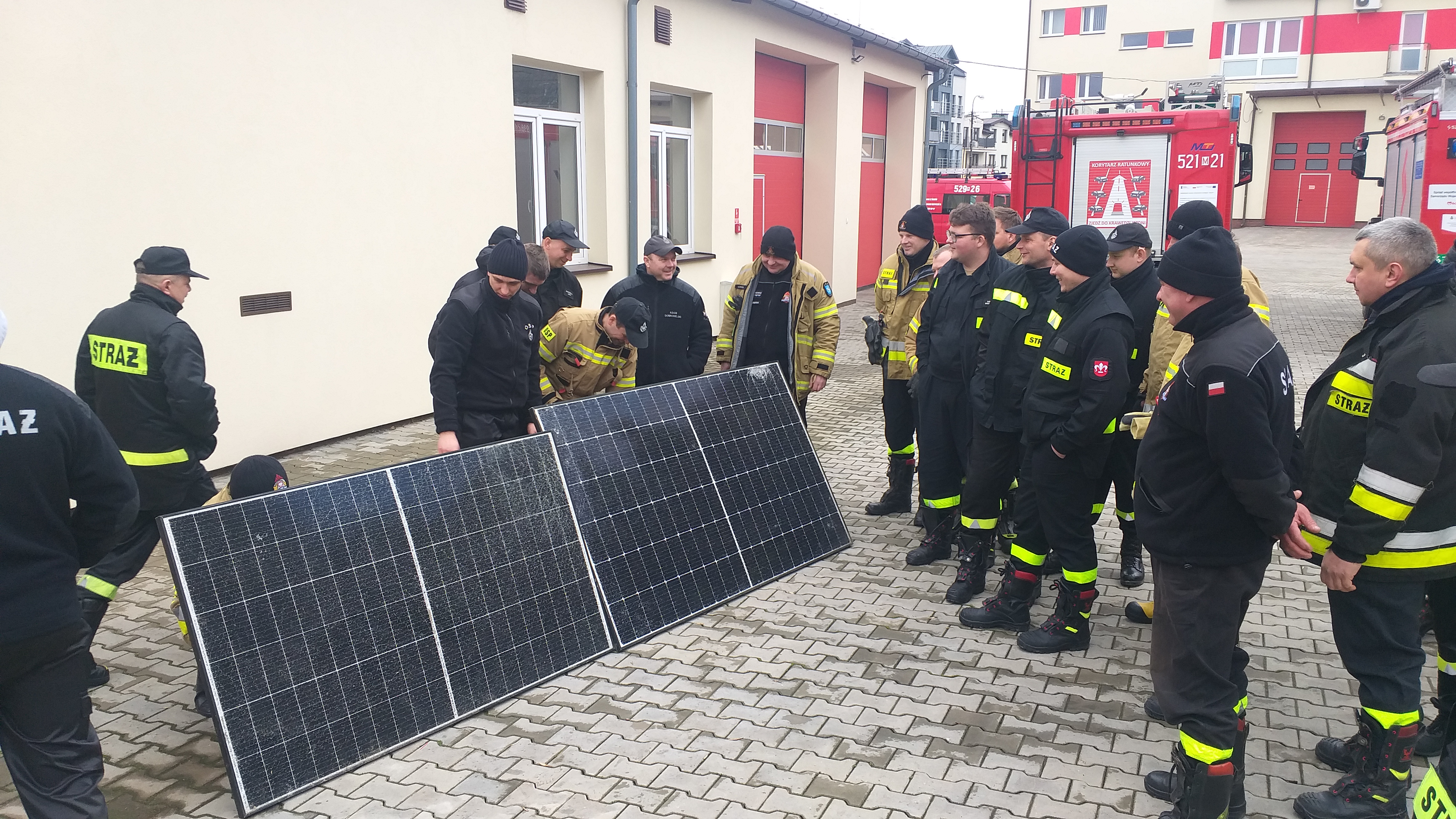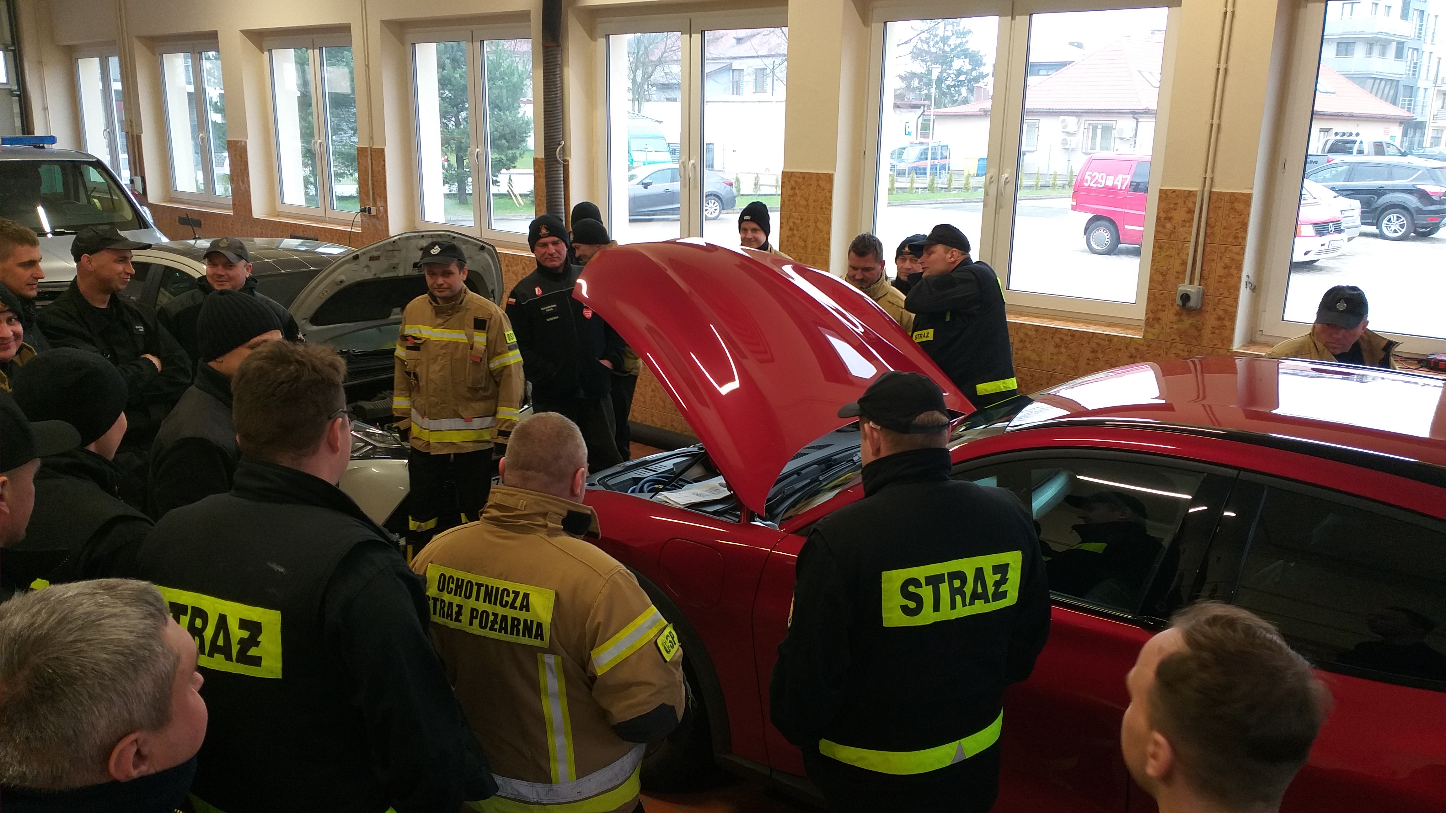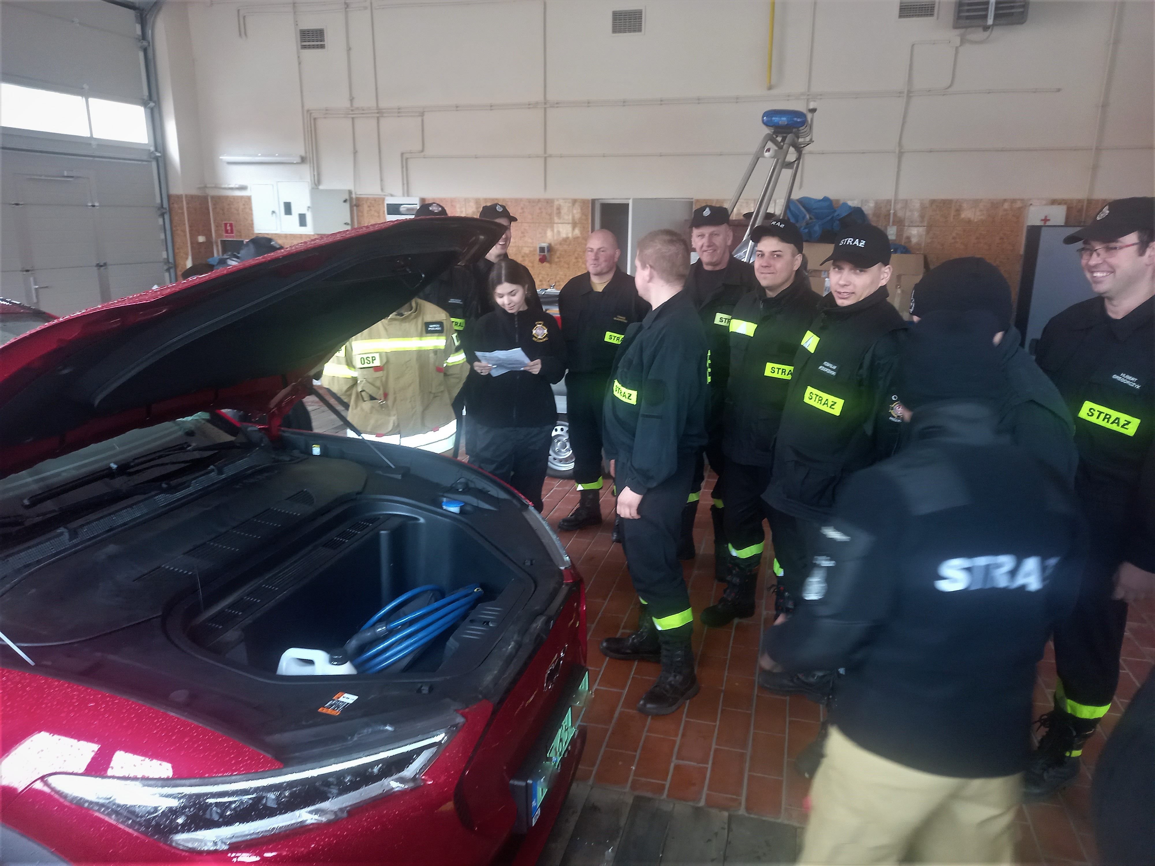 Tematyka szkoleń obejmowała zagadnienia związane z zagrożeniami oraz zasady postępowania podczas pożarów samochodów z napędem elektrycznym, a także zagrożenia powstające podczas prowadzenia działań ratowniczo-gaśniczych w obrębie instalacji fotowoltaicznych.