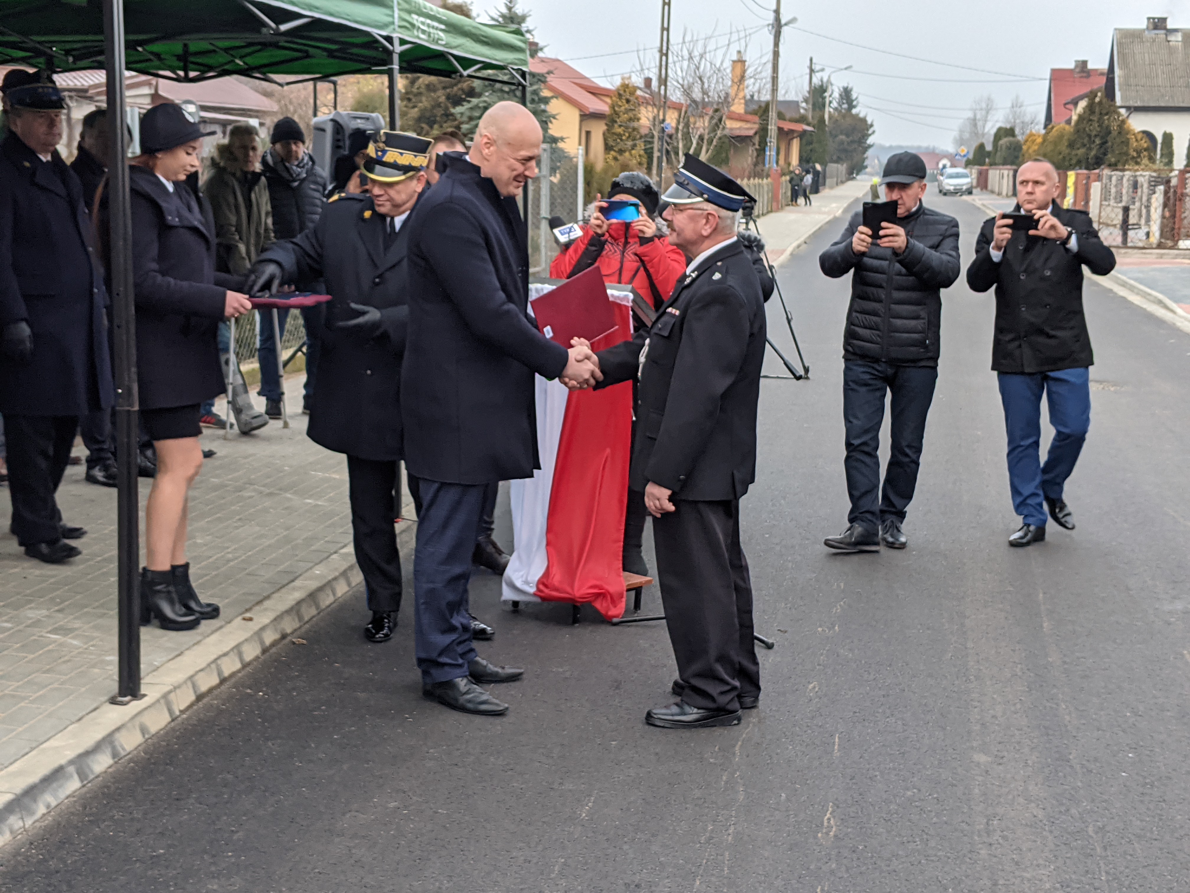 Po odczytaniu aktu przekazania samochodu Dyrektor Generalny MSWiA Pan Dariusz Nowak oraz Mazowiecki Komendant Wojewódzki PSP w Warszawie nadbryg. Jarosław Nowosielski wręczyli kluczyki oraz akt przekazania pojazdu prezesowi jednostki.