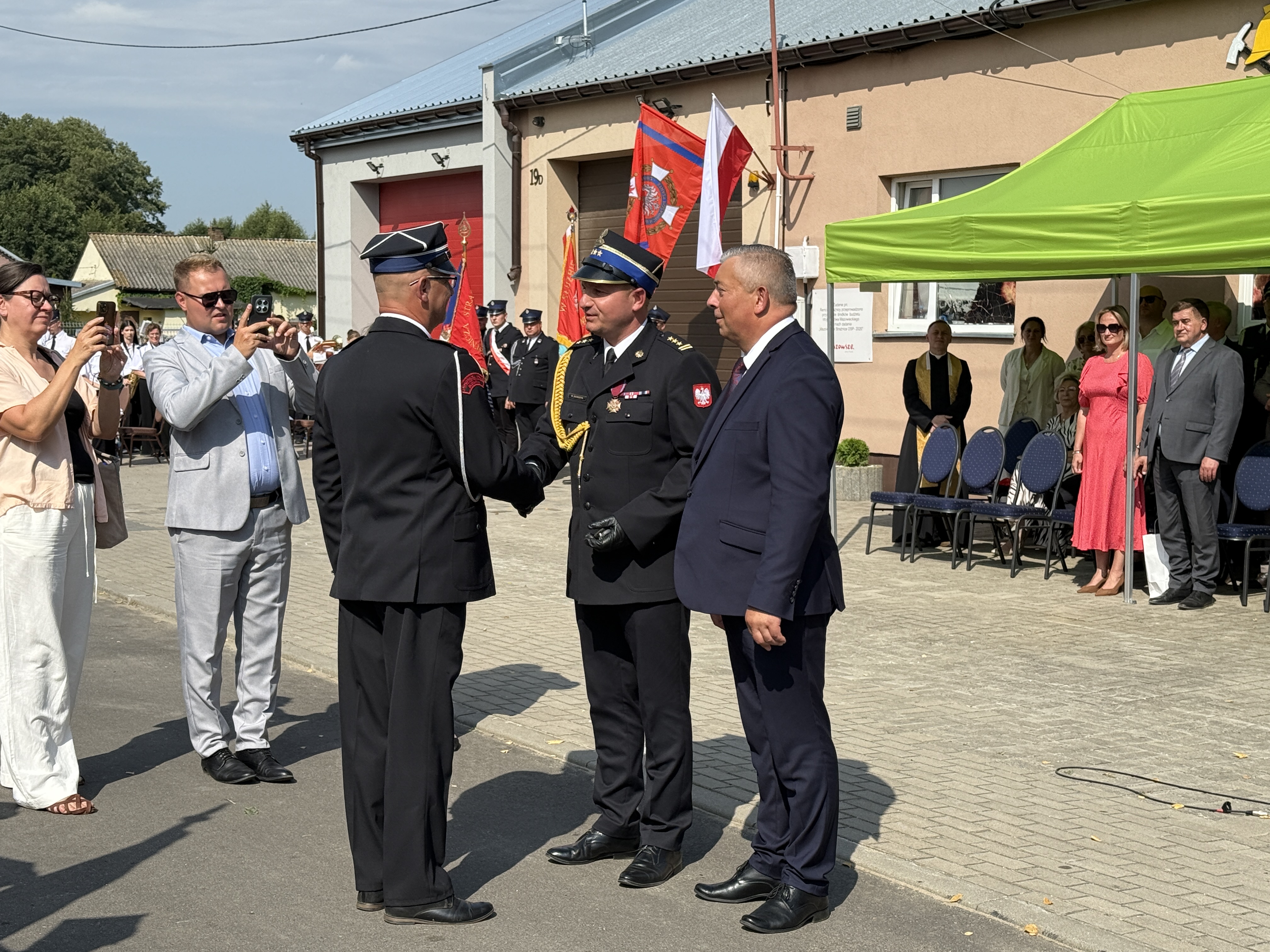 Uroczystość rozpoczęła się od złożenia meldunku przez dowódcę uroczystości druhowi Włodzimierzowi Wojnarowskiemu – Prezesowi Zarządu Oddziału Powiatowego ZOSP RP. Następnie głos zabrał Wójt Gminy Wiśniewo, Pan Grzegorz Woźniak, który przywitał zaproszonych gości i podkreślił znaczenie inwestycji w bezpieczeństwo lokalnej społeczności.