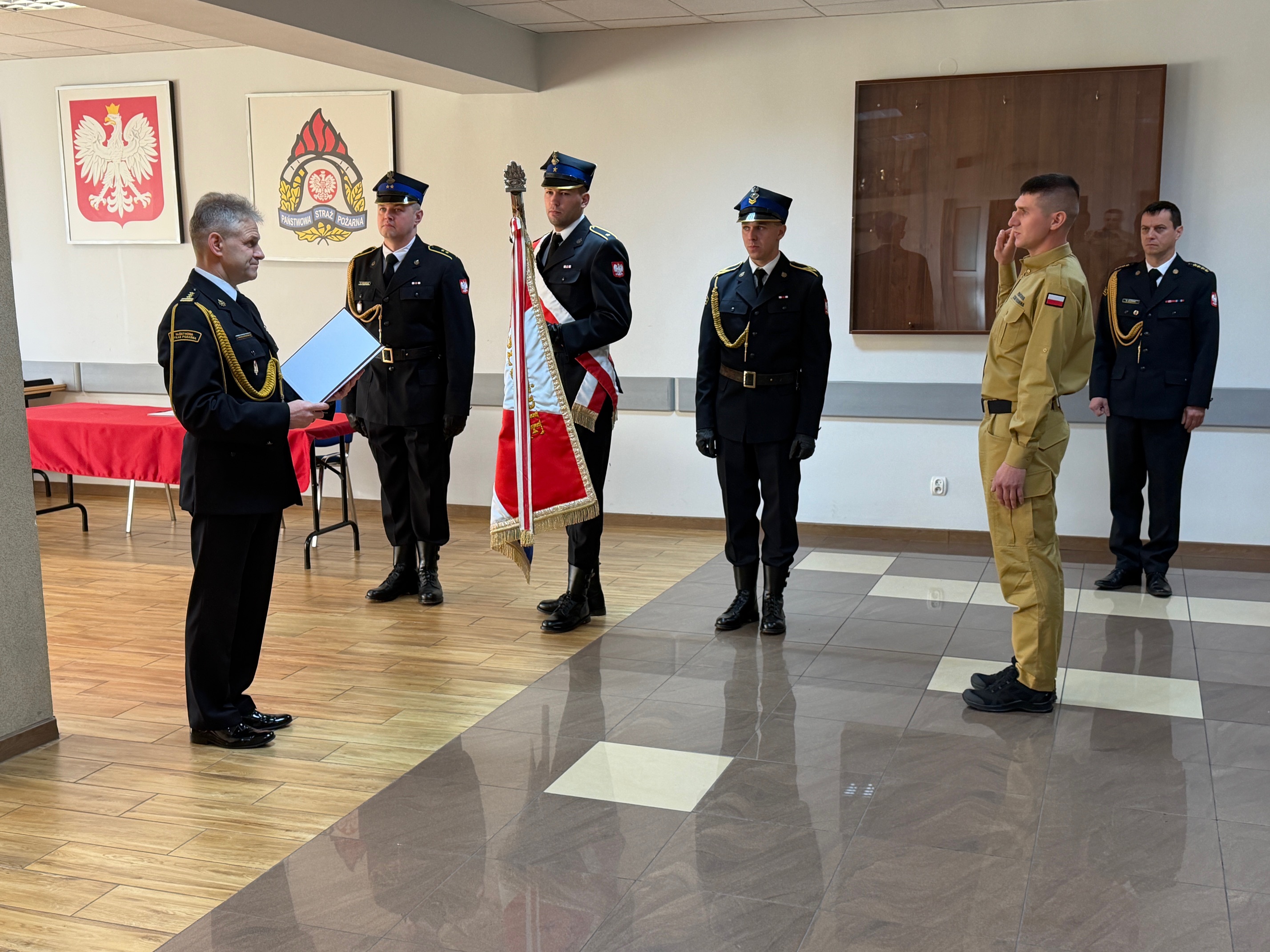 Uroczyste ślubowanie nowego strażaka w Komendzie Powiatowej PSP w Mławie