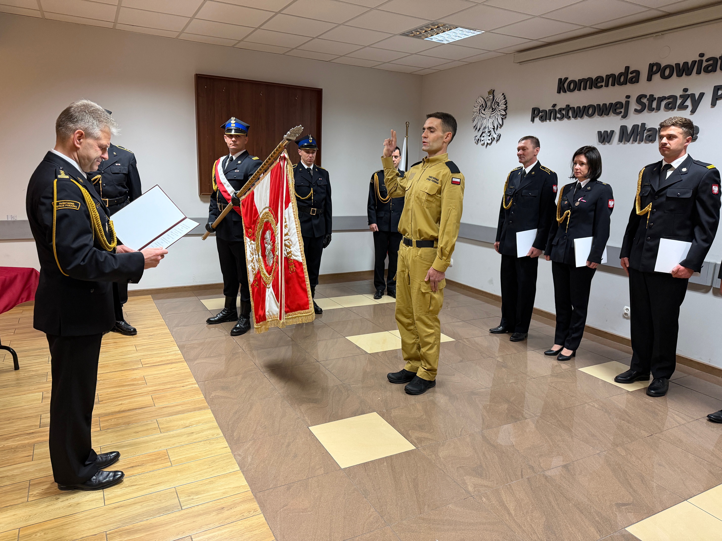 W dniu 9 grudnia 2025 roku w siedzibie Komendy Powiatowej Państwowej Straży Pożarnej w Mławie odbyło się uroczyste ślubowanie strażaka Pawła Słowikowskiego. Zgodnie z ceremoniałem Państwowej Straży Pożarnej ślubowanie przyjął Komendant Powiatowy PSP w Mławie – st. bryg. Jarosław Andruszkiewicz. Po złożeniu przysięgi odbyło się podpisanie oraz uroczyste wręczenie aktu ślubowania.