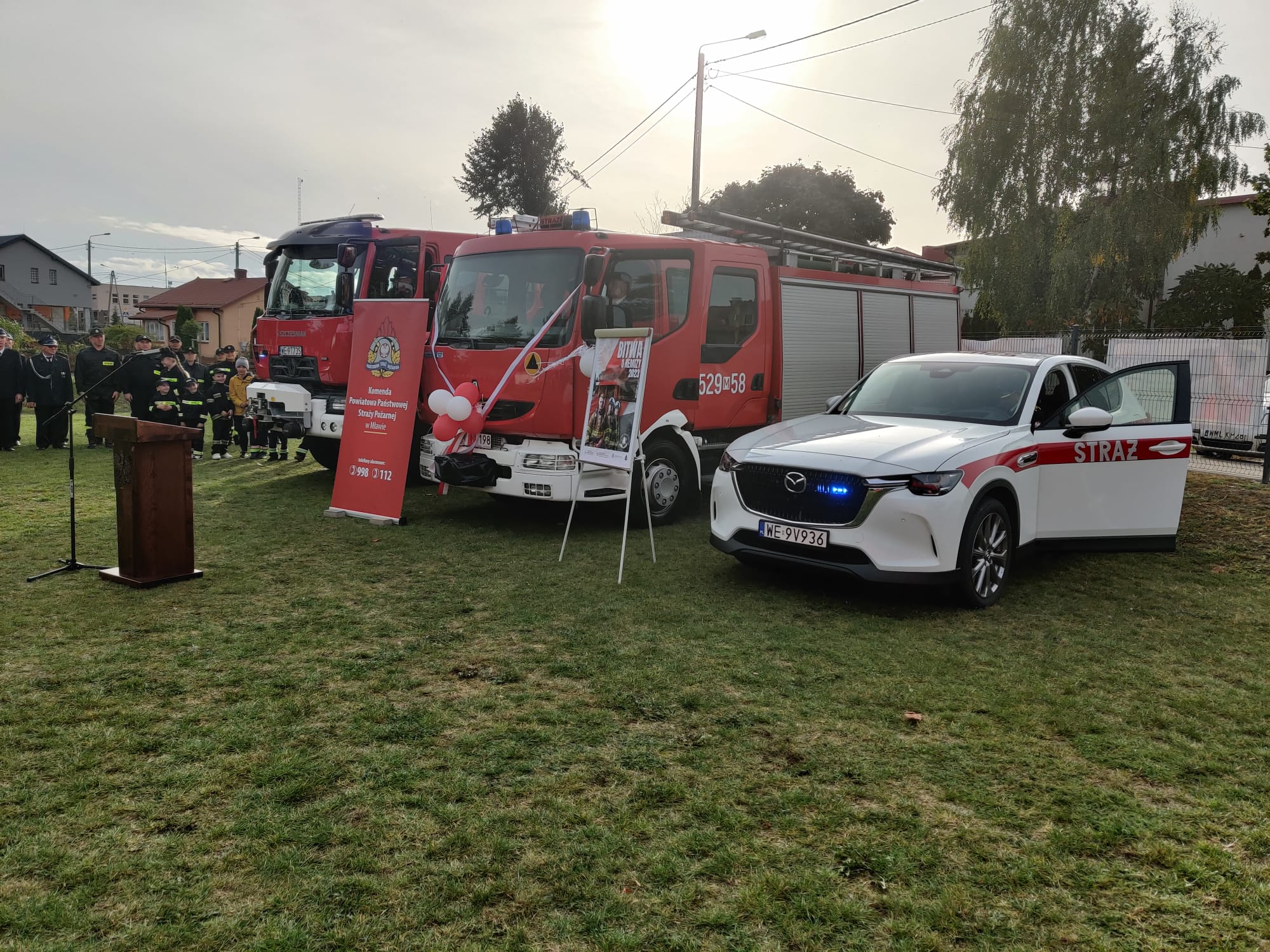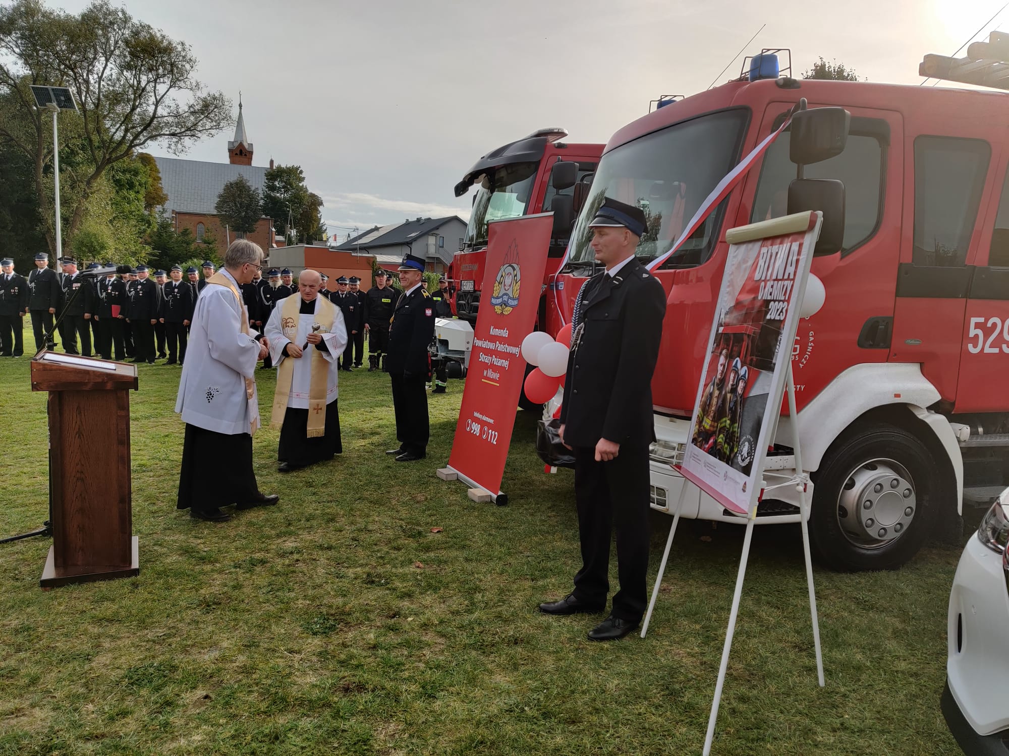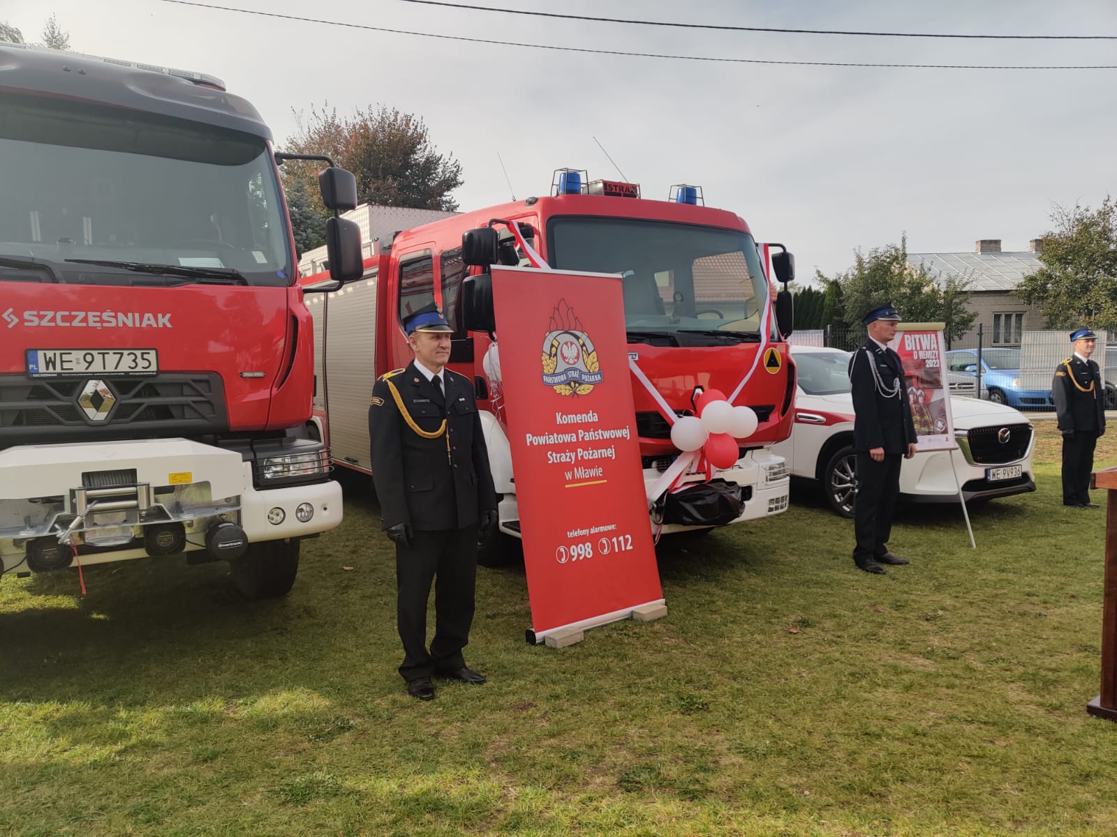 Po wręczeniu odznaczeń Minister Maciej Wąsik oraz nadbryg. Jarosław Piotrowski wraz z włodarzami gminy Dzierzgowo wręczyli akty przekazania i kluczyki do pojazdów pożarniczych. Średni samochód ratowniczo-gaśniczy Renault oraz samochód operacyjny Mazda CX60 trafiły do Komendy PSP w Mławie. Do tej pory użytkowany w mławskiej komendzie samochód ratowniczo -gaśniczy Renault Midlum został przekazany jednostce OSP w Dobrogostach. Nie zabrakło tradycyjnego poświęcenia przekazanego sprzętu przez proboszcza parafii pw. Najświętszej Maryi Panny w Dzierzgowie ks. Wiesława Szymańskiego.
