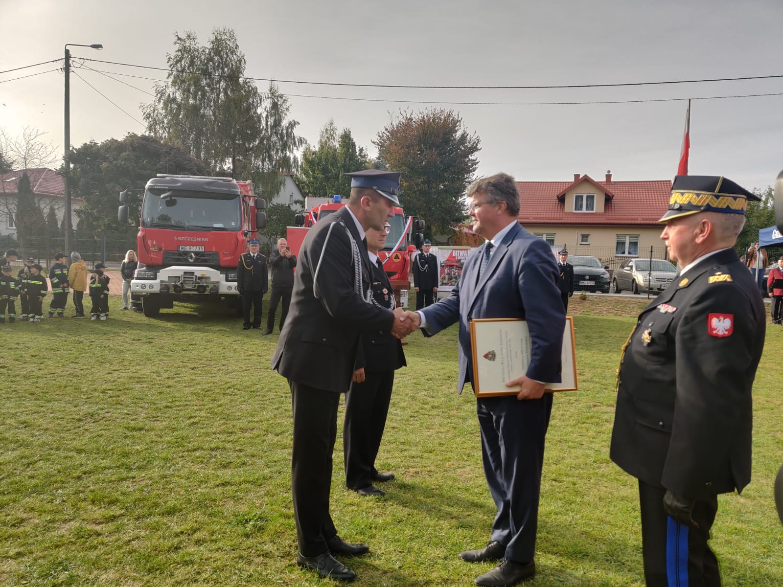 Uroczystość z okazji włączenia jednostek ochotniczych straży pożarnych do krajowego systemu ratowniczo-gaśniczego oraz przekazania samochodów pożarniczych