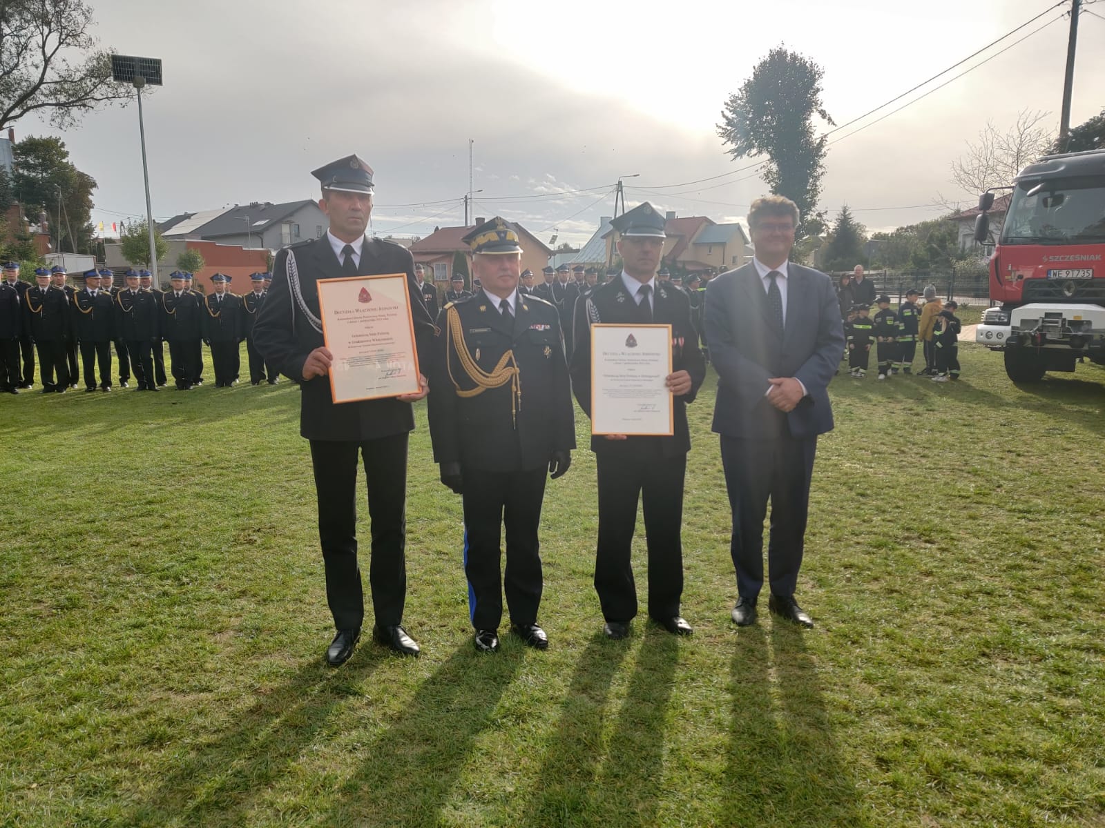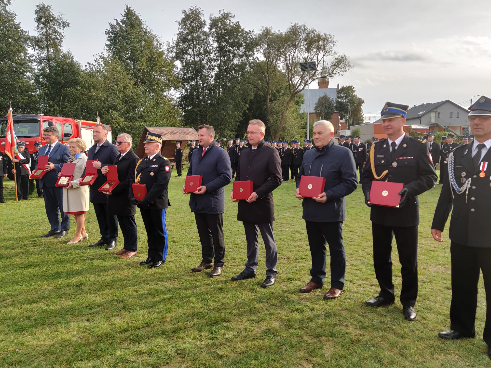 Ważnym punktem uroczystości było uhonorowanie wyróżniających się druhów OSP medalami „Za zasługi dla pożarnictwa” oraz odznaką „Strażak Wzorowy”. Medale i odznaczenia wręczyli: Minister Maciej Wąsik, dh Włodzimierz Wojnarowski – Członek Prezydium Zarządu Oddziału Wojewódzkiego Związku Ochotniczych Straży Pożarnych Rzeczypospolitej Polskiej, nadbryg. Jarosław Piotrowski – Mazowiecki Komendant Wojewódzki PSP oraz bryg. Mirosław Wójcik – Komendant Powiatowy PSP w Mławie.