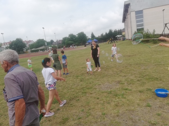 Podczas spotkania największym zainteresowaniem cieszył się tor przeszkód, który wszystkie dzieci dzielnie pokonały. Oprócz tego przygotowaliśmy quizy, łamigłówki, kolorowanki i zabawę z bańkami mydlanymi.
