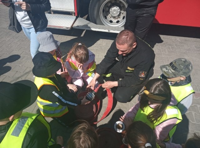 Komenda Powiatowa Państwowej Straży Pożarnej w Mławie gościła uczniów wraz z nauczycielami ze Szkoły Podstawowej nr 7 w Mławie. Pełne atrakcji spotkanie odbyło się 9 maja 2022 r. Goście w ramach prewencji społecznej dowiedzieli się jakie zagrożenia pożarowe występują oraz poznali podstawowe zasady zachowania się w przypadku ich powstania. Ponadto dzieci zapoznały się samochodami bojowymi i sprzętem znajdującym się na wyposażeniu Jednostki Ratowniczo – Gaśniczej Komendy Powiatowej PSP w Mławie. Wszyscy chętni mieli także okazję wcielić się w rolę strażaków, zasiąść w samochodzie pożarniczym, a nawet podać wodę ze strażackiej prądownicy.