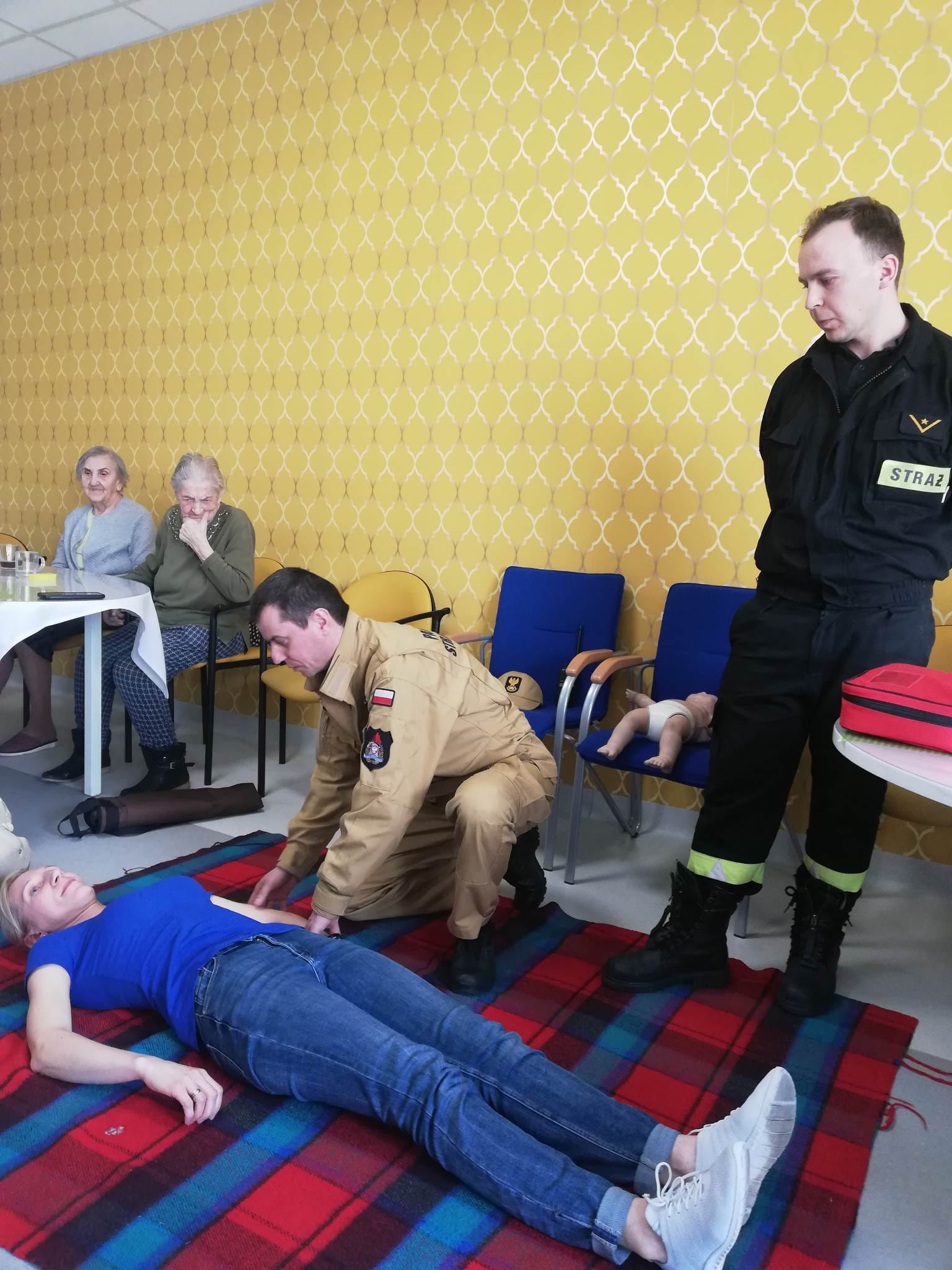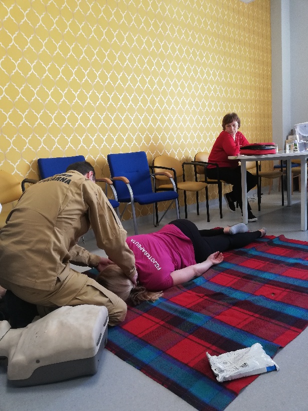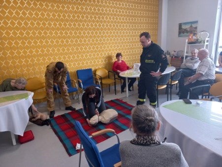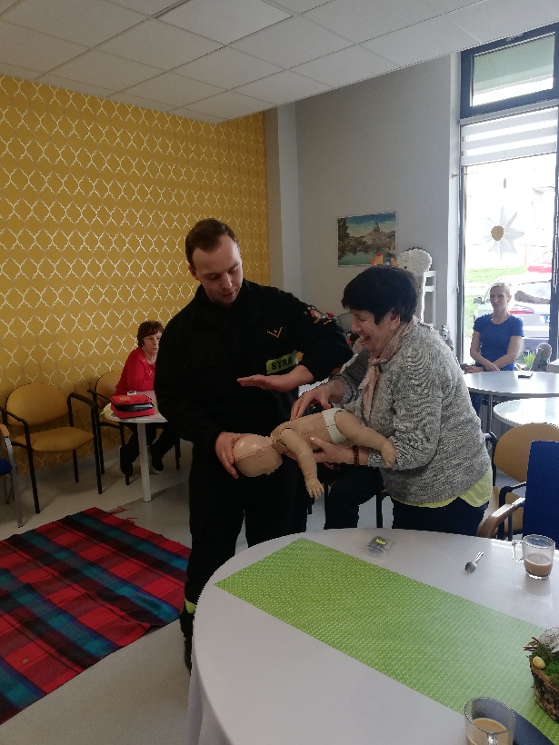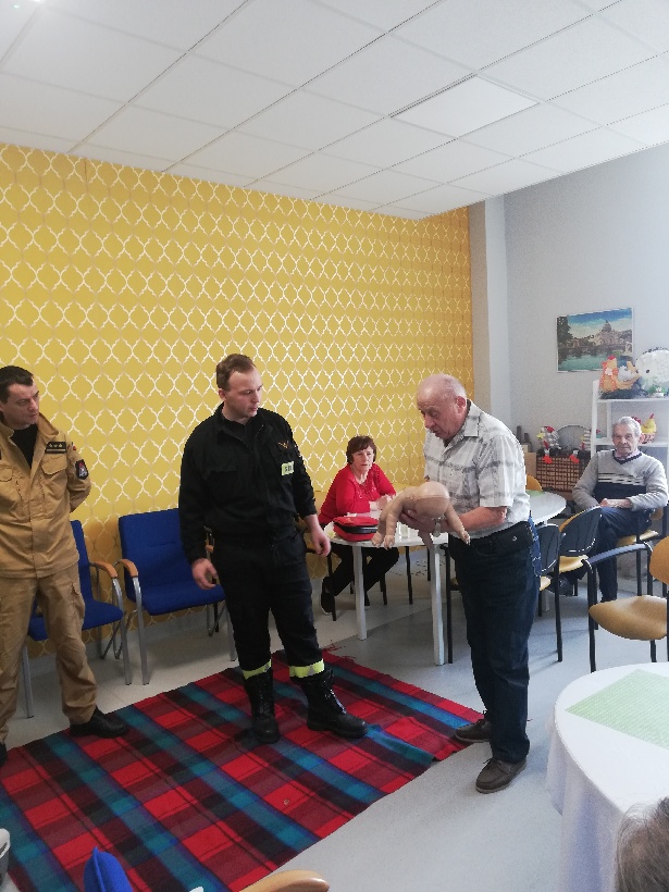 Podczas spotkania strażacy jasno i szczegółowo zaprezentowali seniorom m. in. jak ocenić stan osoby poszkodowanej lub jeżeli zajdzie potrzeba prowadzić resuscytację krążeniowo-oddechową. Uczestnicy spotkania mieli również okazję zobaczyć jak wygląda ułożenie osoby nieprzytomnej z zachowanym własnym oddechem w pozycji bezpiecznej oraz wiele innych zagadnień z dziedziny ratownictwa medycznego, których znajomość może pomóc uratować czyjeś życie bądź zdrowie. Ponadto seniorzy pod okiem specjalistów mogli samodzielnie spróbować udzielania pierwszej pomocy z wykorzystaniem fantoma. Zadanie to spotkało się z ogromnym zainteresowaniem uczestników.