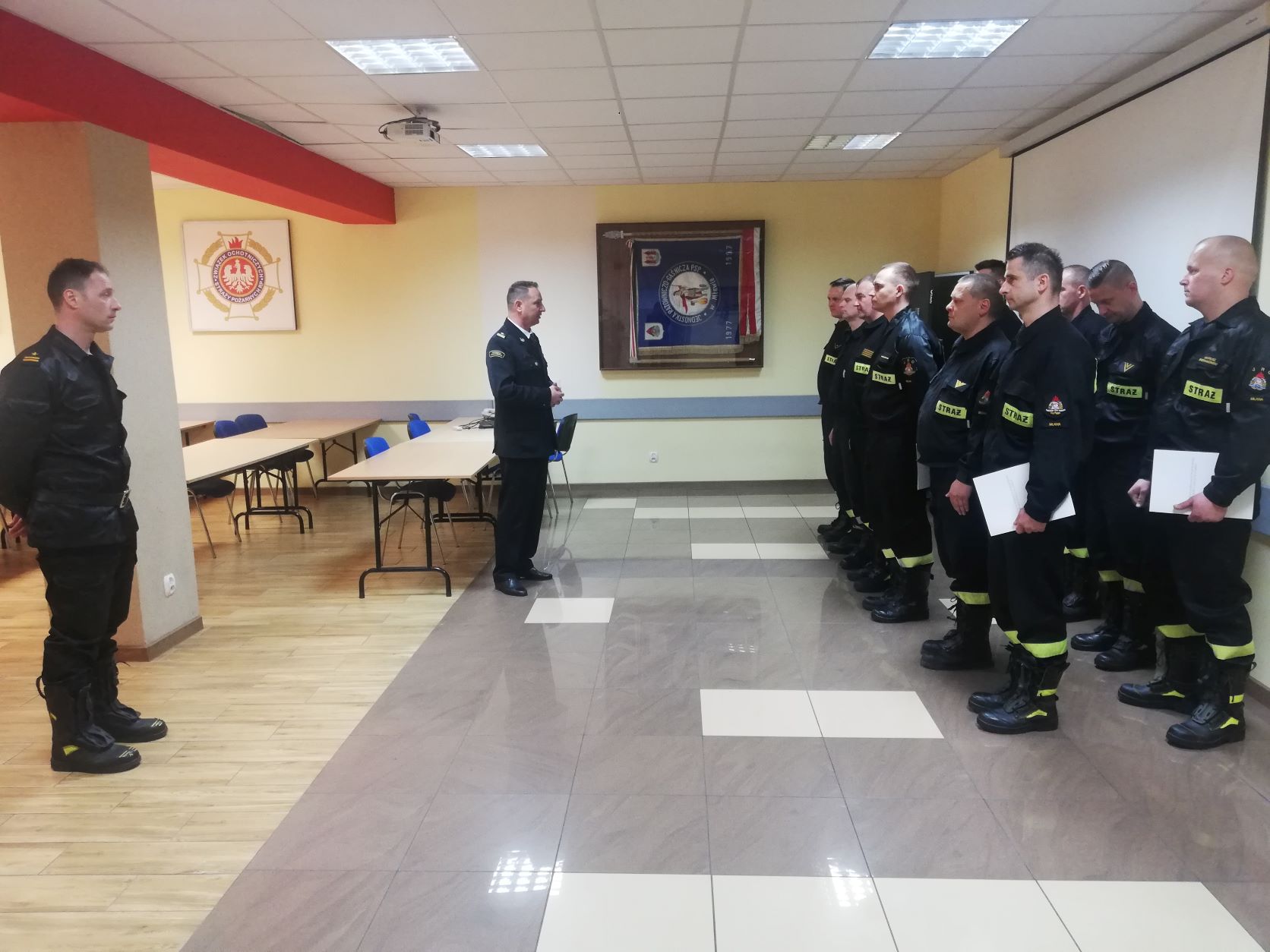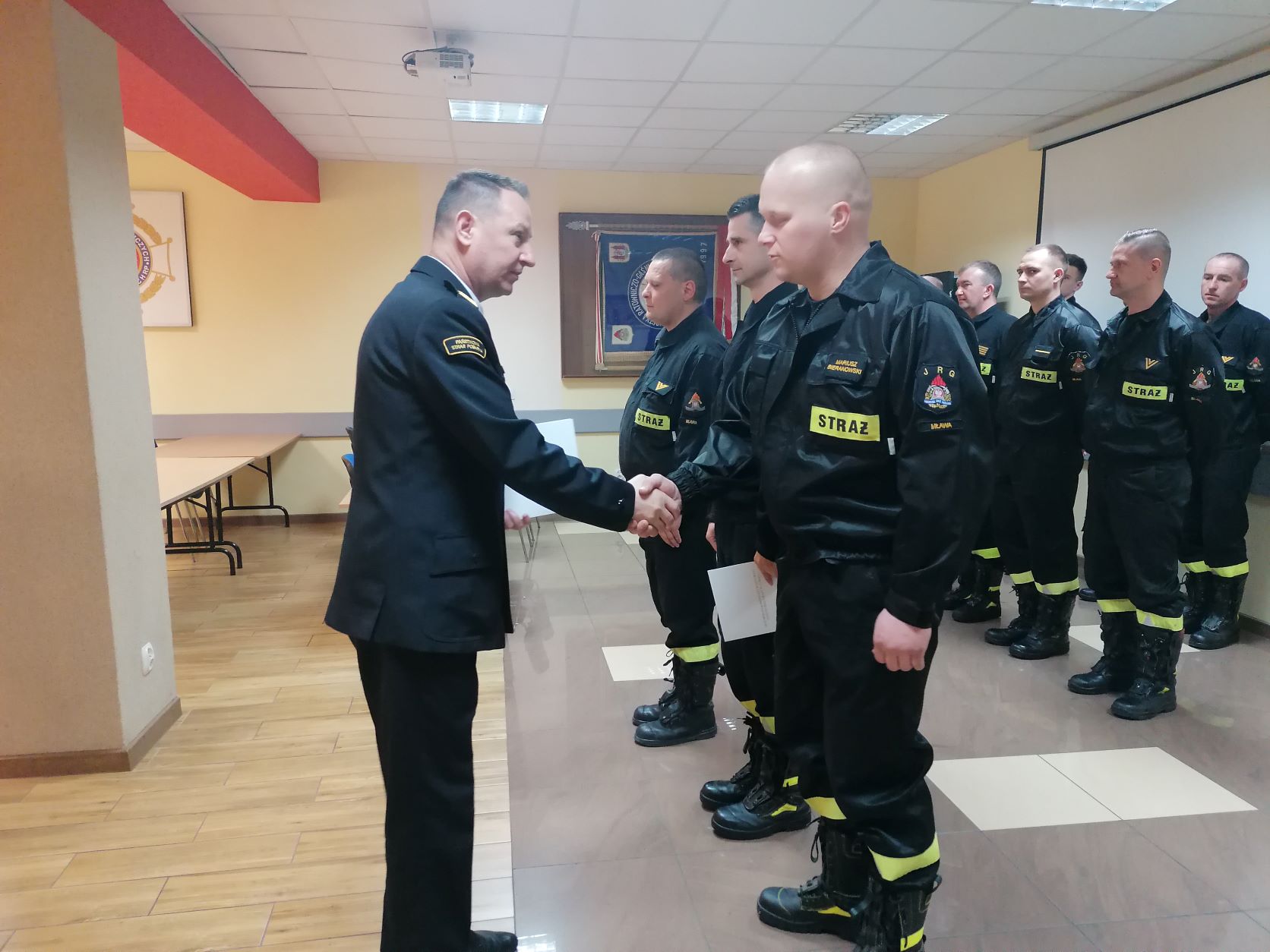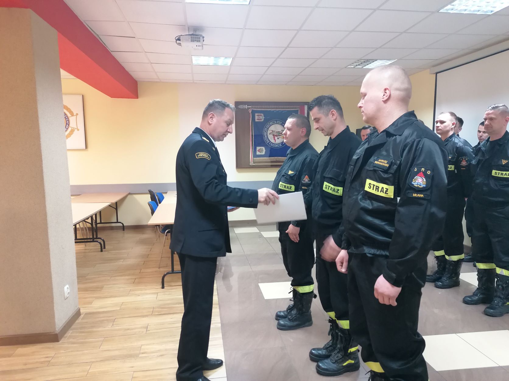 W dniu 26 kwietnia 2022 r. w budynku Komendy Powiatowej PSP w Mławie odbyła się uroczysta zbiórka, podczas której Komendant Powiatowy PSP w Mławie mł. bryg. Mirosław Wójcik wręczył w imieniu Mazowieckiego Komendanta Wojewódzkiego PSP nagrody za wzorowe wykonywanie zadań służbowych w ramach pomocy uchodźcom wojennym z Ukrainy.