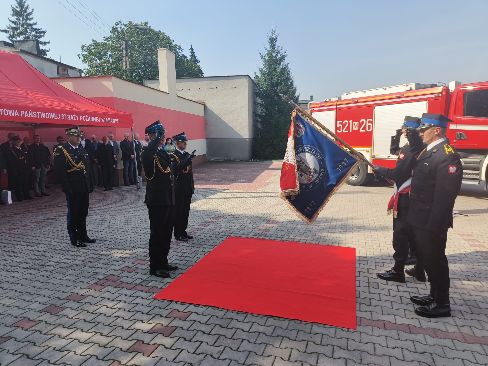 Dalszą część uroczystej zbiórki stanowiły przemówienia bryg. Mirosława Wójcika, st. bryg. Jarosława Andruszkiewicza, a także zaproszonych gości, w tym: Starosty powiatu mławskiego pana Witolda Okumskiego i Prezesa Zarządu Oddziału Powiatowego Związku Ochotniczych Straży Pożarnych Rzeczypospolitej Polskiej pana Włodzimierza Wojnarowskiego.