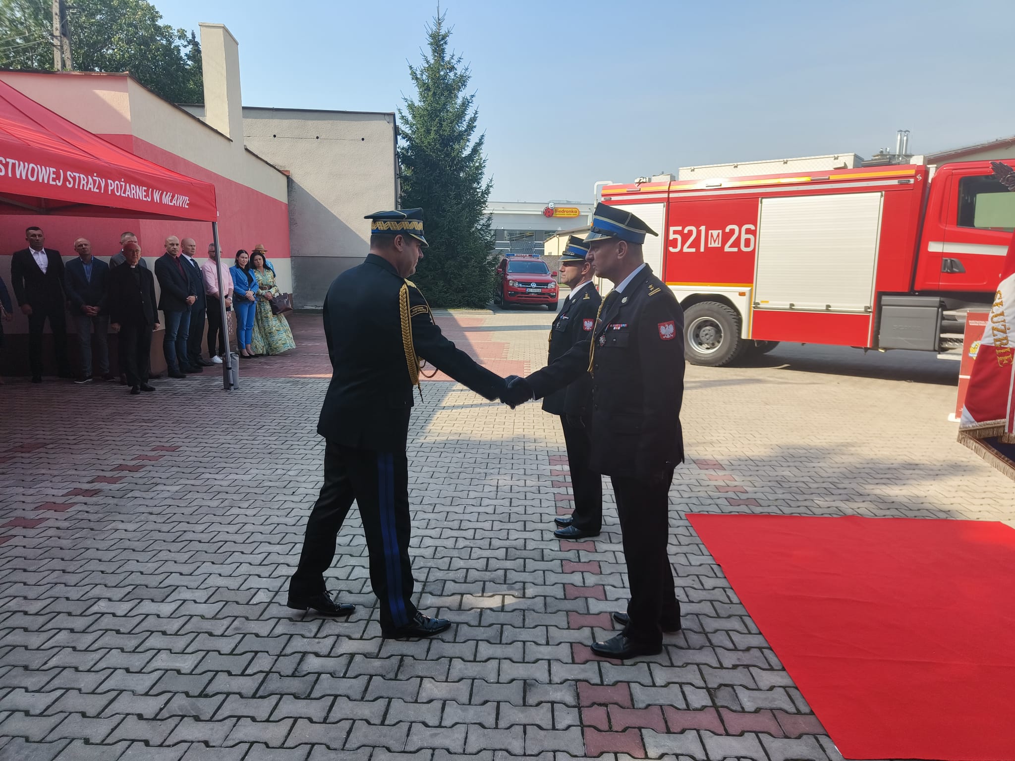 Na zakończenie tej części uroczystości Mazowiecki Komendant Wojewódzki przyjął meldunki o zdaniu obowiązków przez bryg. Mirosława Wójcika i o przyjęciu pełnienia obowiązków przez st. bryg. Jarosława Andruszkiewicza.