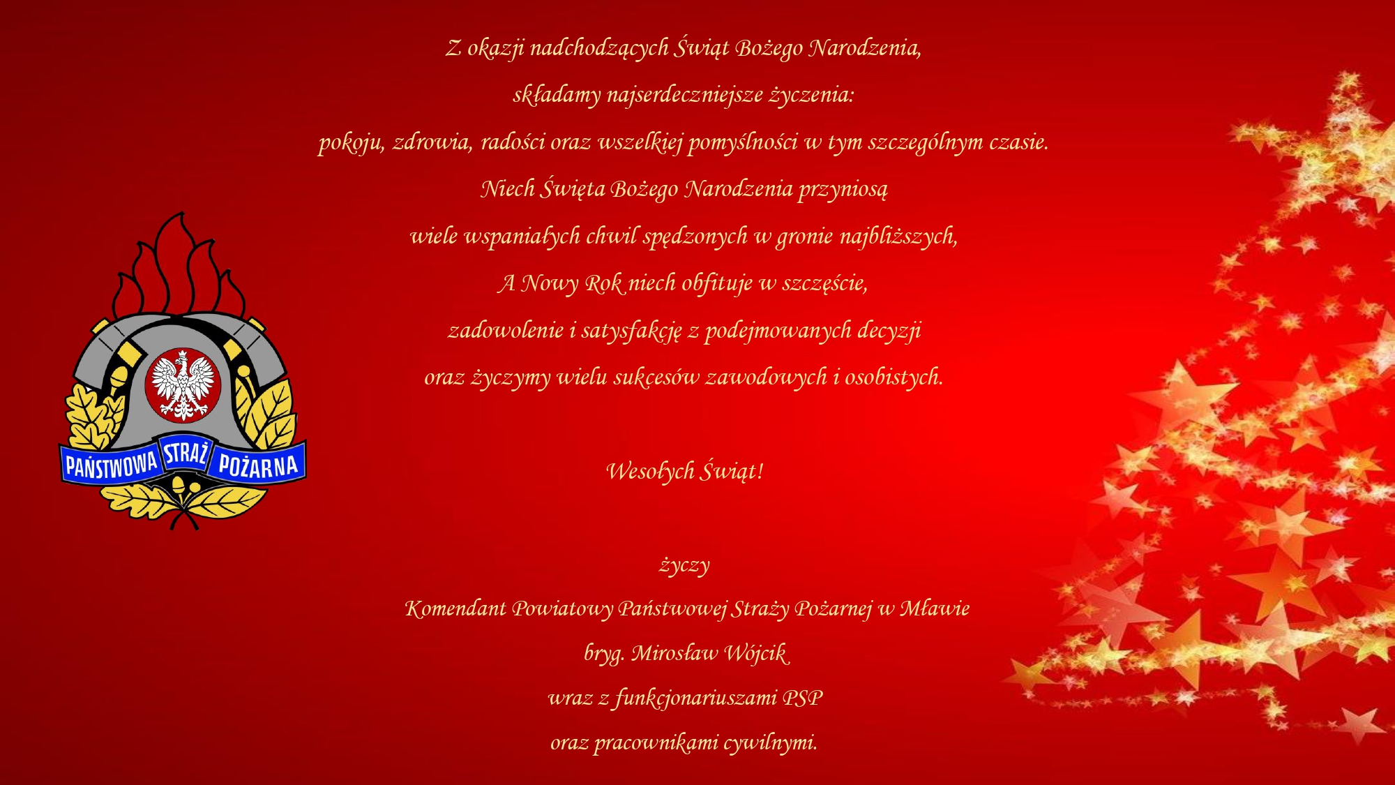 Życzenia świąteczne Komendanta Powiatowego PSP w Mławie 23.12.2022 Zdjęcia (1) Pokaż zdjęcie 1 z galerii.