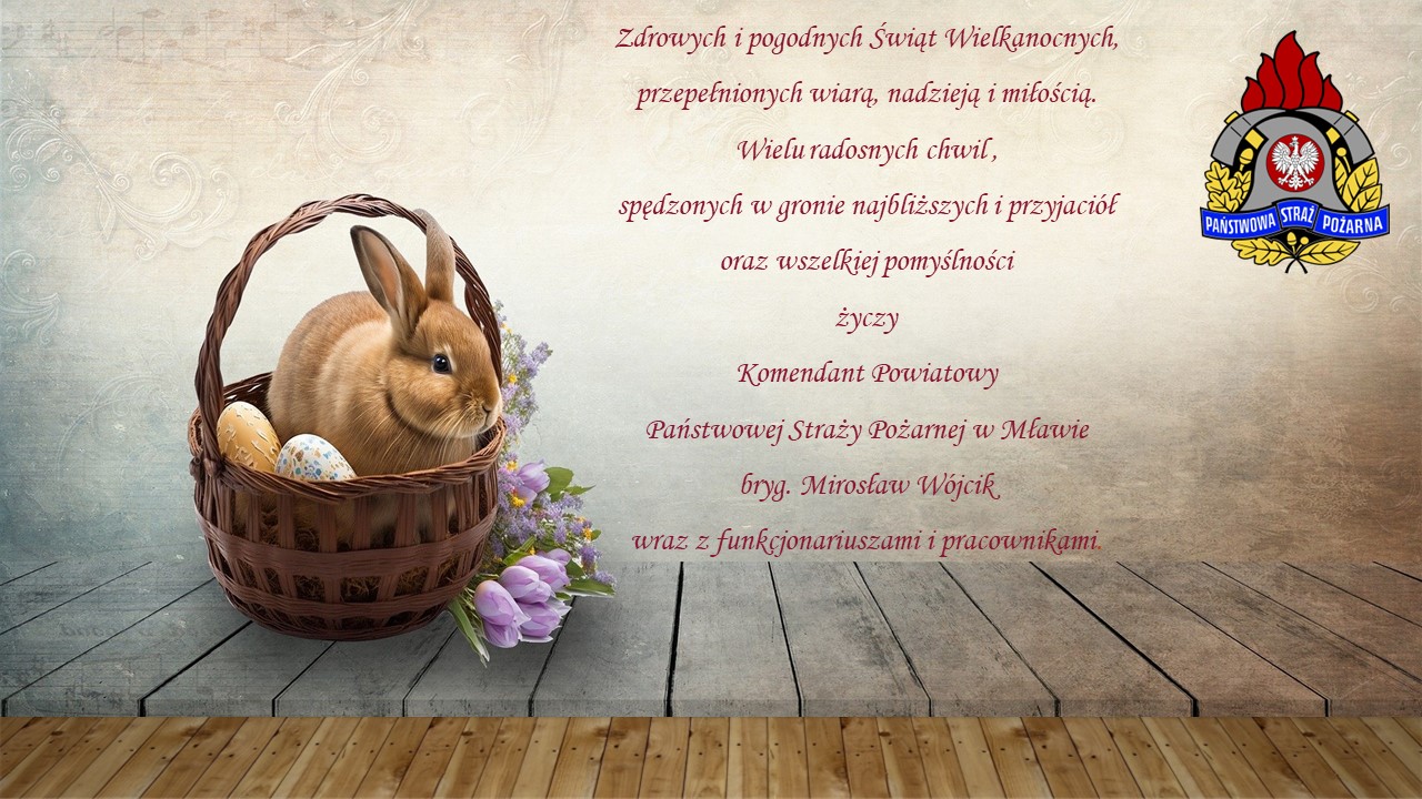 Życzenia świąteczne Komendanta Powiatowego PSP w Mławie 03.04.2023 Zdjęcia (1) Pokaż zdjęcie 1 z galerii.