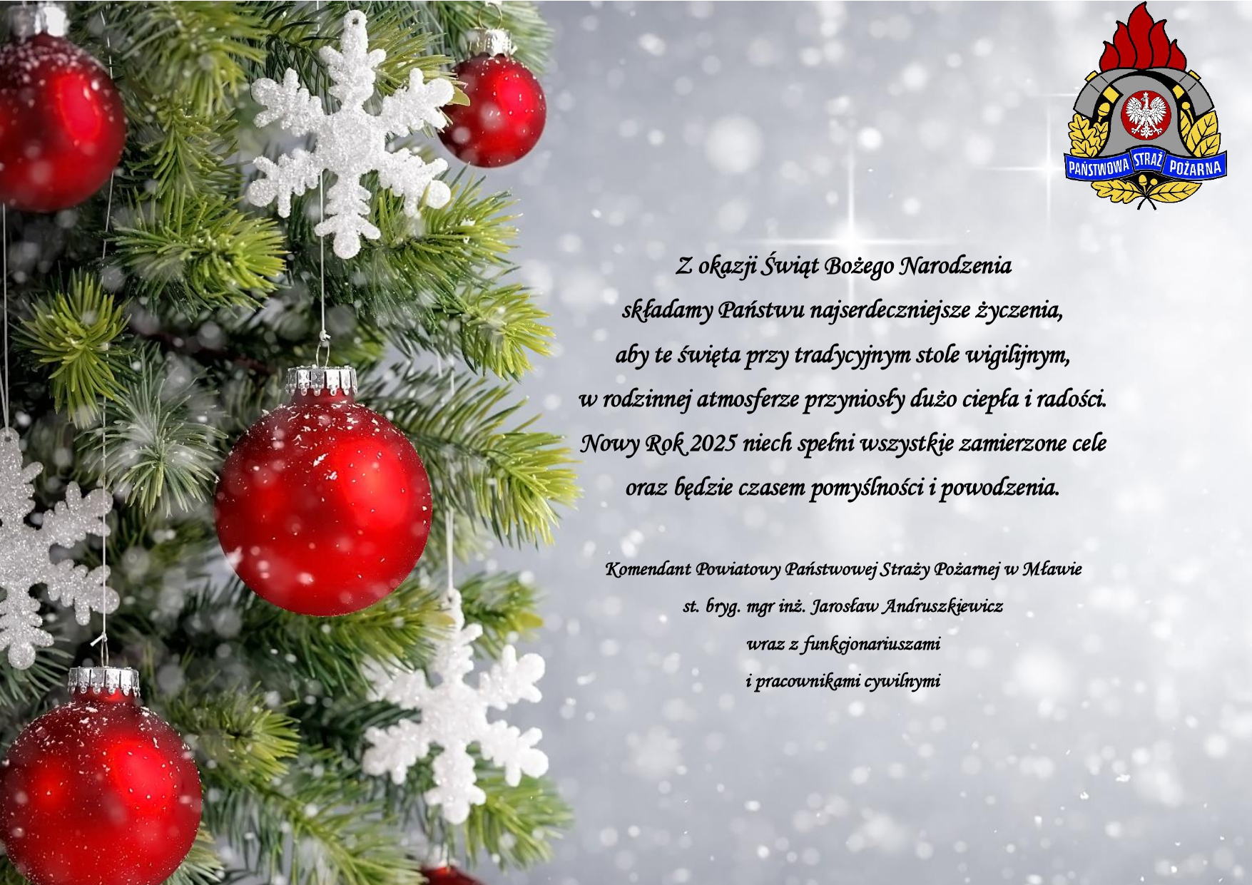 Życzenia świąteczne Komendanta Powiatowego PSP w Mławie 20.12.2024 Zdjęcia (1) Pokaż zdjęcie 1 z galerii.