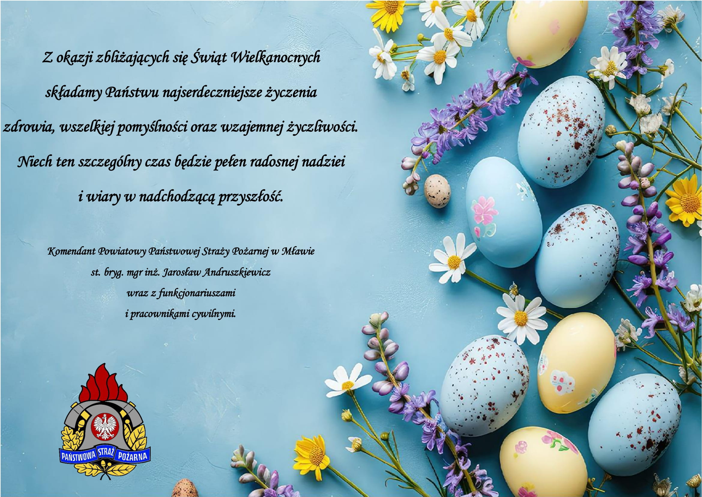 Życzenia Wielkanocne Komendanta Powiatowego PSP w Mławie