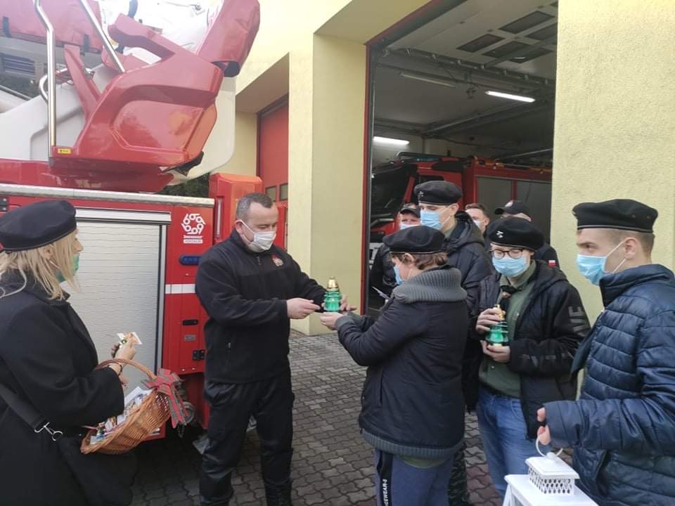 Hercerze przekazali na ręce mł. bryg. Łukasza Szulca – Zastępcy Dowódcy JRG w Mogilnie lampion z Betlejemskim Światłem Pokoju, będącym symbolem pokoju, nadziei i miłości.