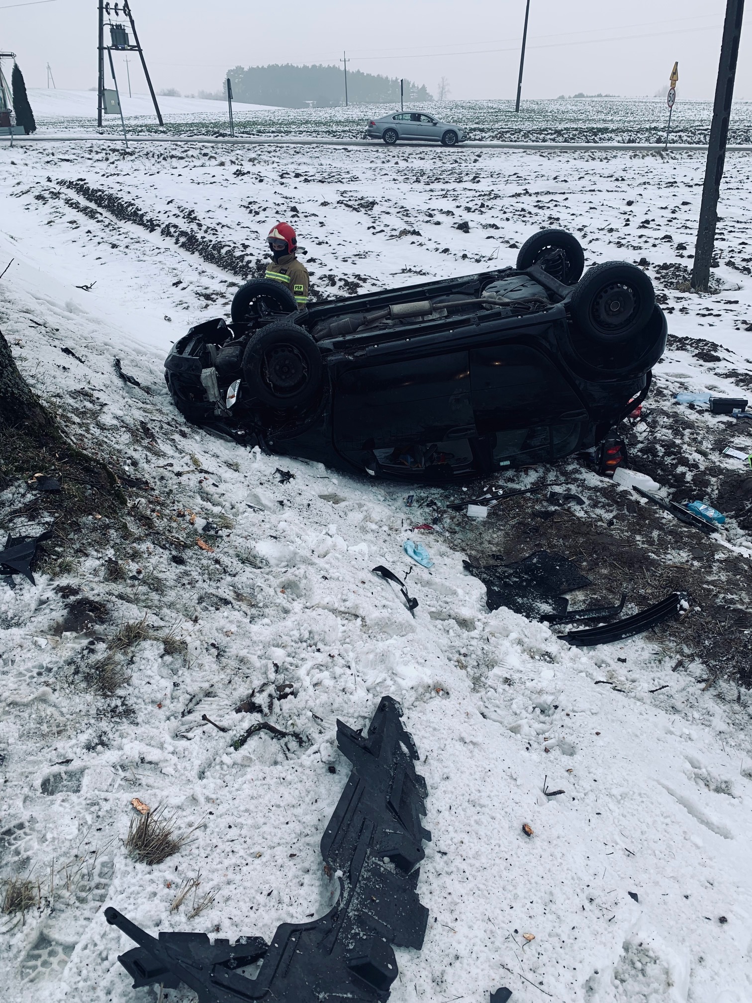 18 lutego 2021 r. (czwartek) ok. godz. 08:25 dyżurny Stanowiska Kierowania Komendanta Powiatowego Państwowej Straży Pożarnej w Mogilnie otrzymał zgłoszenie o dachowaniu samochodu osobowego w Procyniu (gm. Mogilno).