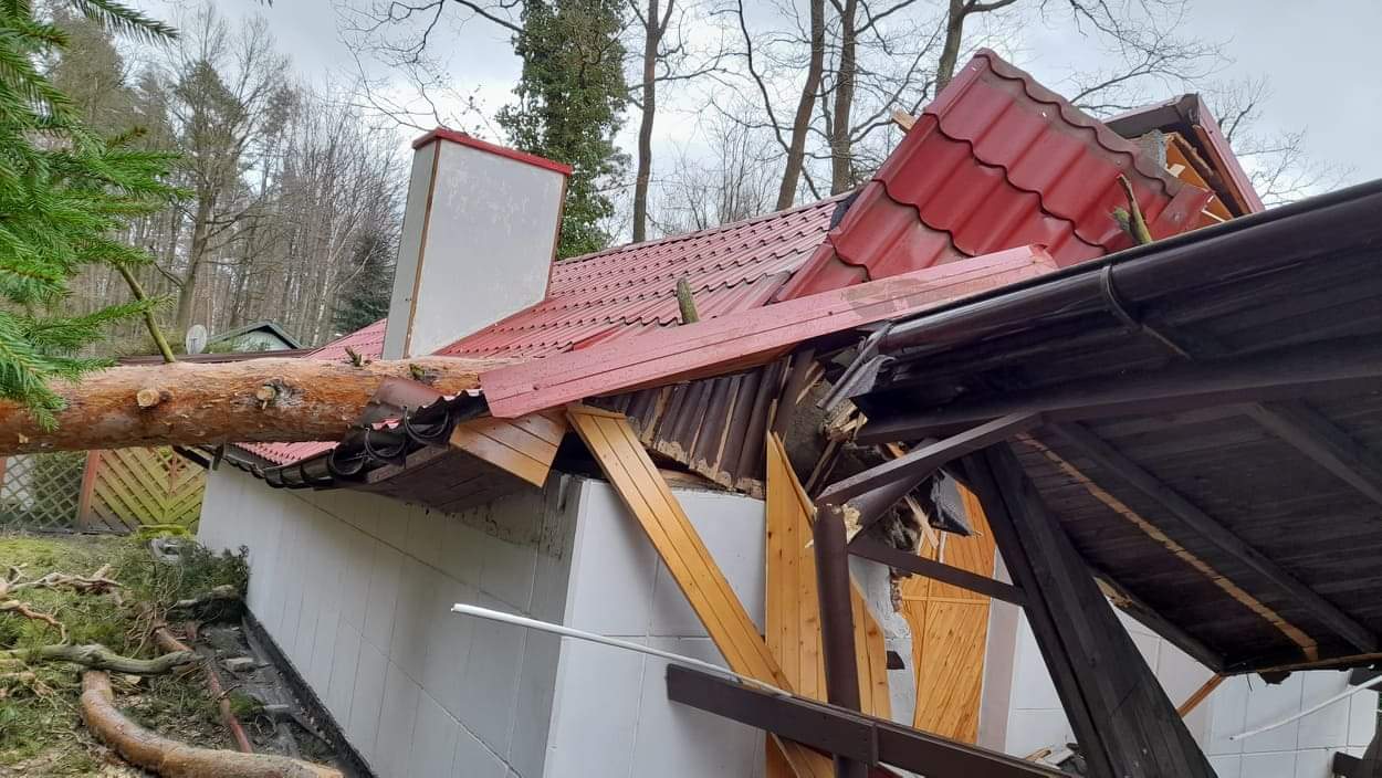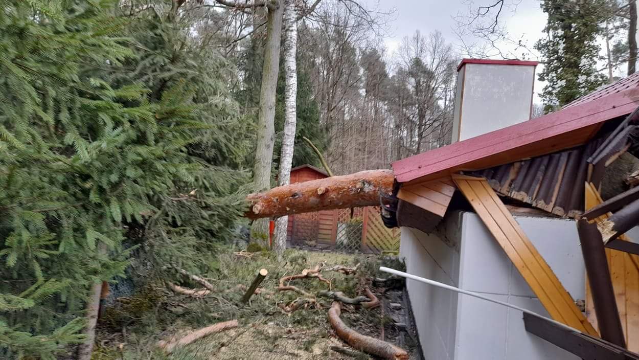Drzewo spadło na domek letniskowy w Przyjezierzu