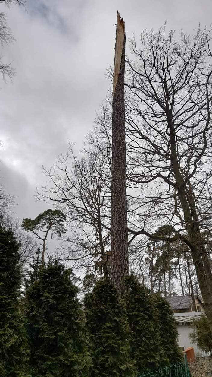 Po przybyciu na miejsce zdarzenia zastano złamane drzewo (wysokość ok. 30m), które złamało się na wysokości około 10 m nad ziemią. Złamana część spadła na domek letniskowy uszkadzając jego konstrukcję oraz poszycie dachowe. Szczęsciem w nieszczęsciu jest to, że w chwili zdarzenia w domku nikt nie przebywał.