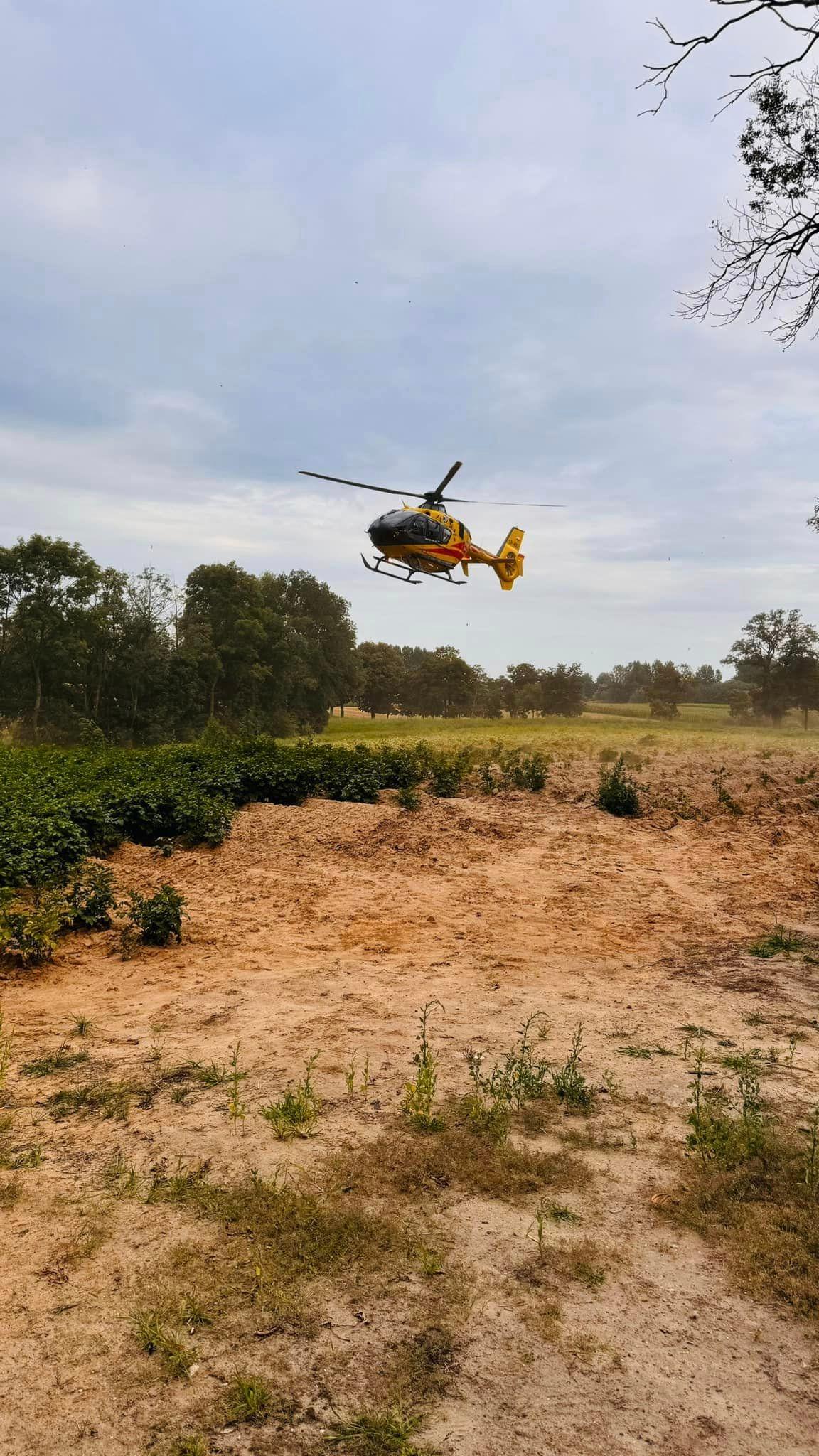 Działania zastępu w pierwszej fazie polegały na wykonaniu dostępu do poszkodowanego poprzez usunięcie drzwi lewych przednich i tylnych, nacięciu progu oraz rozepchnięciu słupka A. Jednocześnie udzielano poszkodowanemu pierwszej pomocy przedmedycznej. Następnie w asyście ratowników medycznych ewakuowano poszkodowanego z pojazdu na desce ortopedycznej. W pojeździe odłączono akumulator. Poszkodowany po zaopatrzeniu w karetce został przeniesiony do śmigłowca LPR i przetransportowany do szpitala.