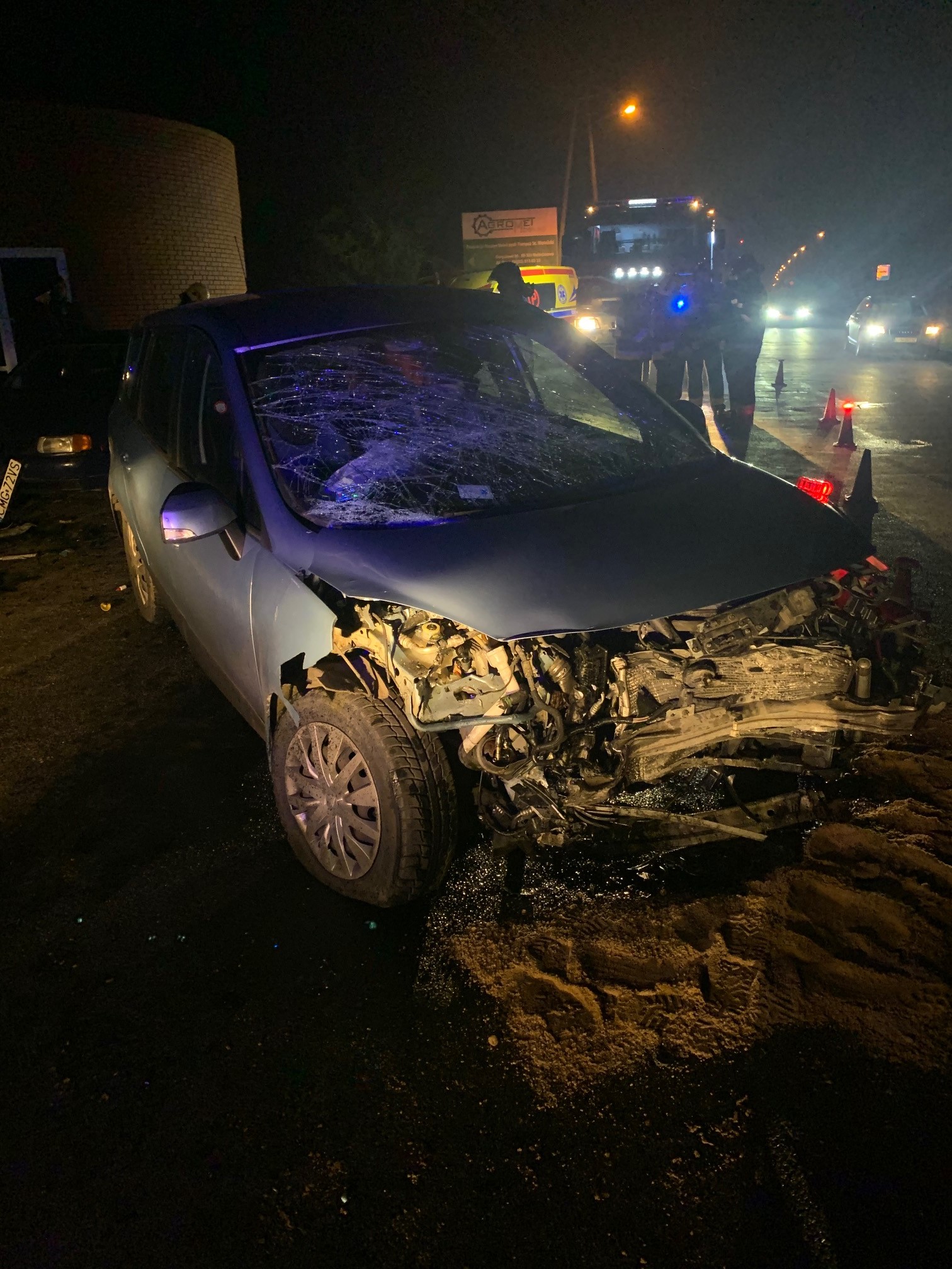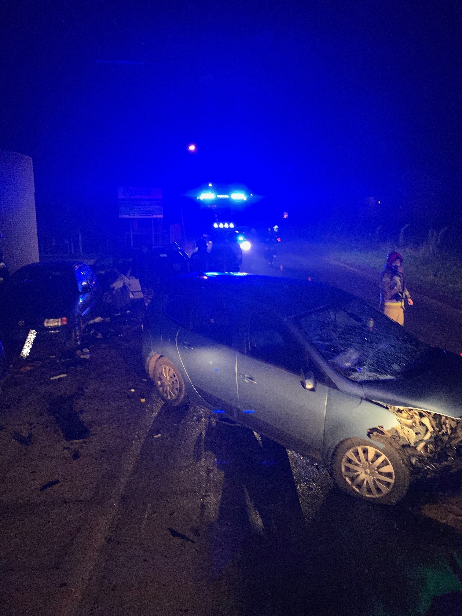 Po przybyciu na miejsce zdarzenia zastano cztery samochody osobowe po zderzeniu. Dwa z nich były zaparkowane przy drodze i w chwili zdarzenia nie było w nich osób. Kierowcy podróżujący dwoma pozostałymi autami znajdowali się na zewnątrz bez widocznych obrażeń. Droga powiatowa częściowo zablokowana.