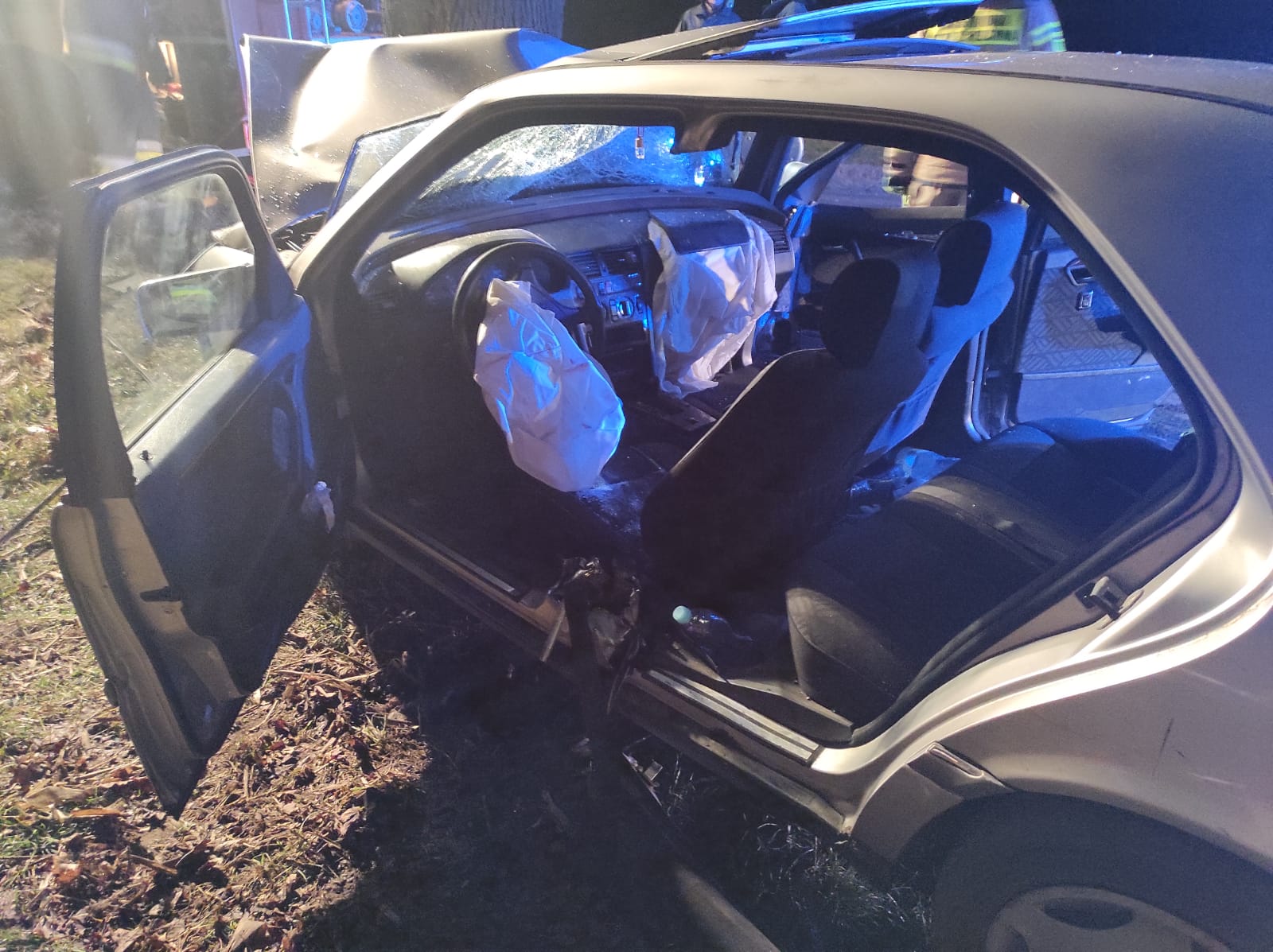 Po przybyciu na miejsce zdarzenia zastano samochód osobowy, który wcześniej uderzył w drzewo. Pojazd w całości znajdował się poza drogą. Wewnątrz znajdował się mężczyzna.