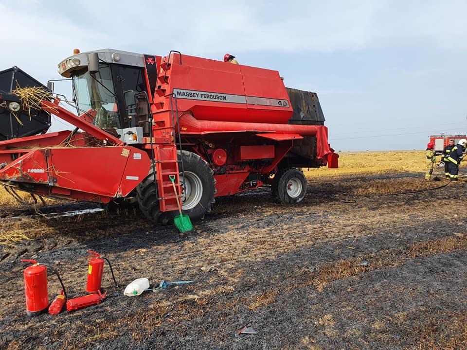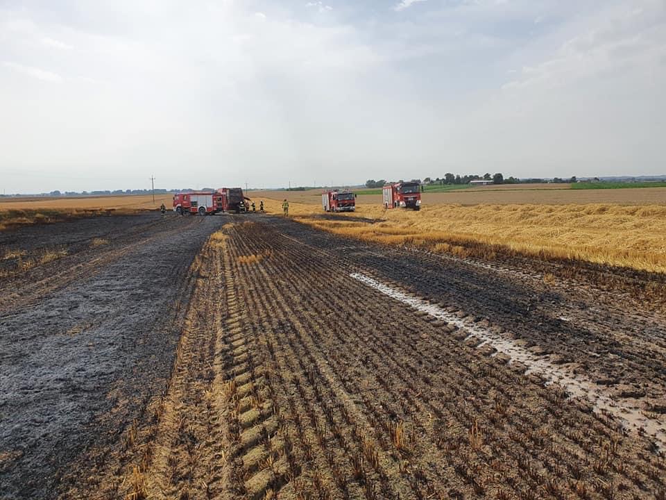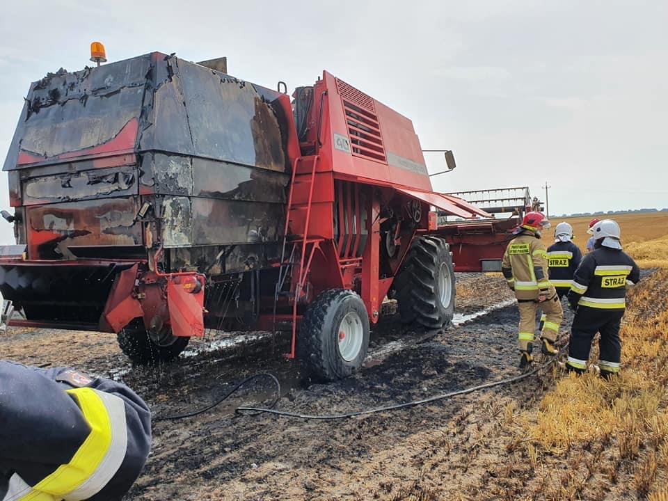 Pożar kombajnu i zboża na pniu w Łosośnikach
