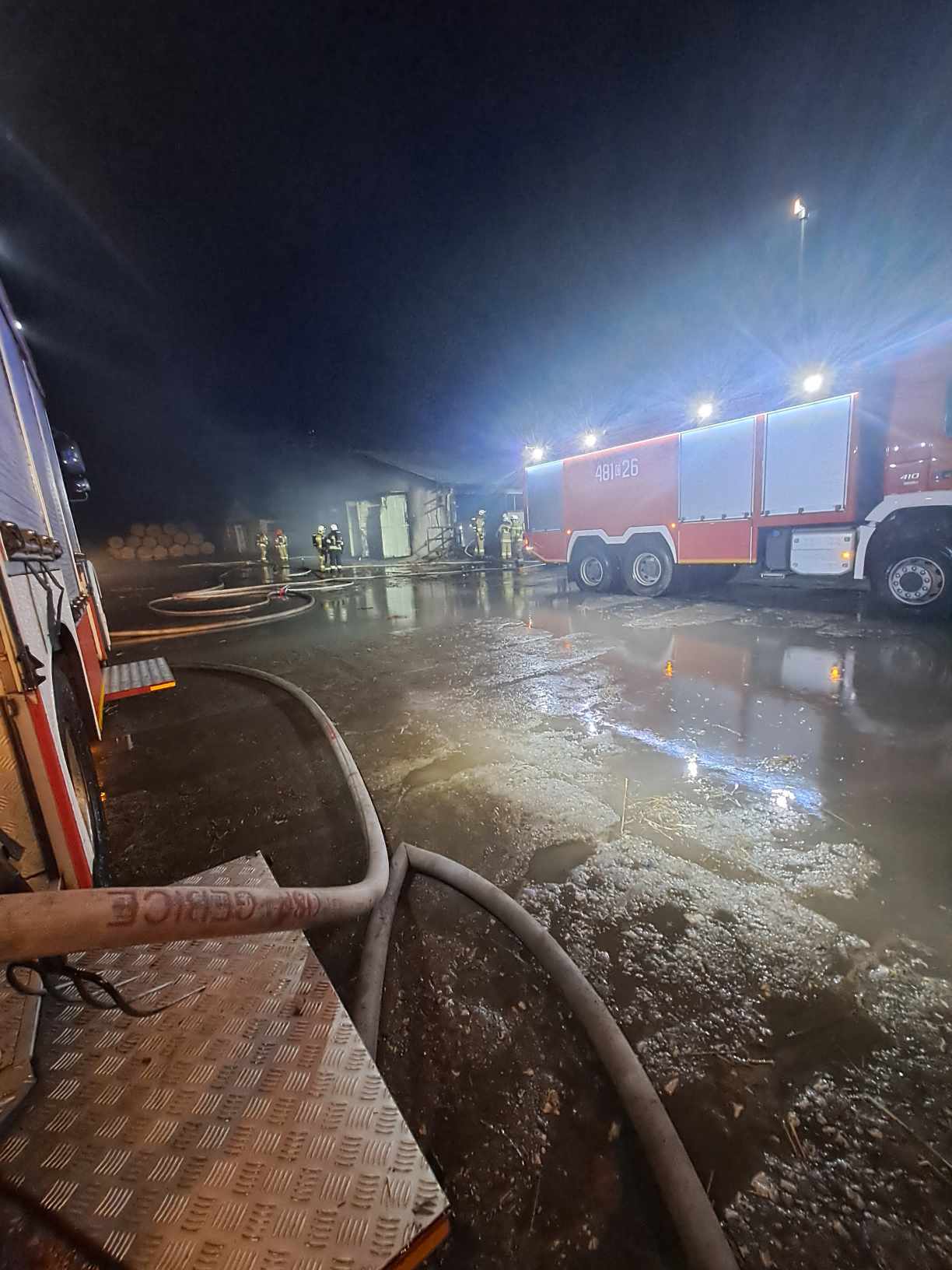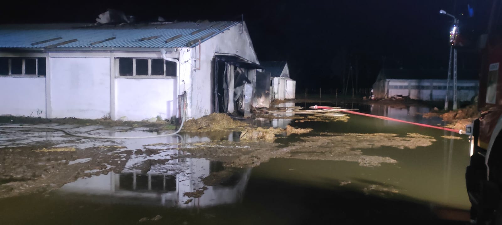 W trakcie działań gaśniczych udało się ewakuować z pożaru dwie żywe sztuki bydła, które zostały przebadane przez weterynarza. Następnie we współpracy z pracownikiem zakładu odłączono w całym obiekcie zasilanie elektryczne. Miejsca zdarzenia sprawdzono kamerą termowizyjną w celu wykluczenia występowania zarzewi ognia.