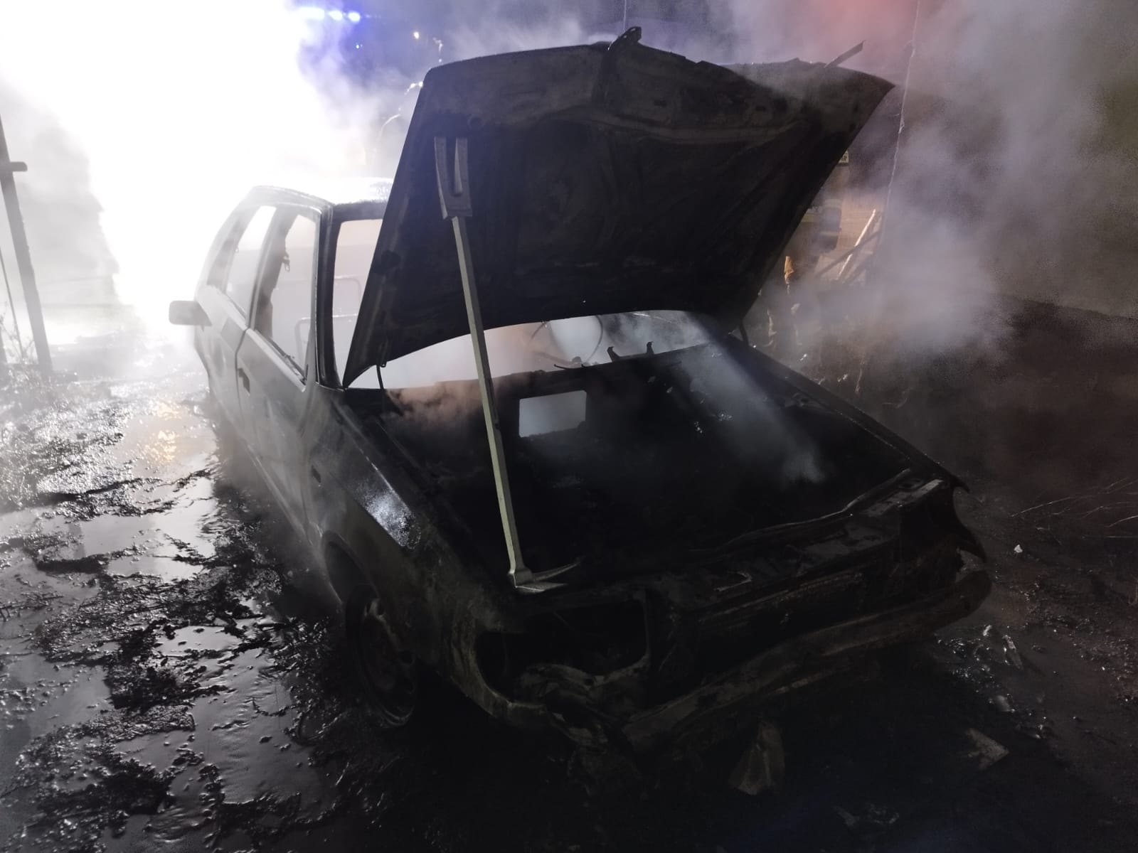 Po przybyciu na miejsce zdarzenia zastano samochód osobowy Skoda Felicia w całości objęty pożarem.
