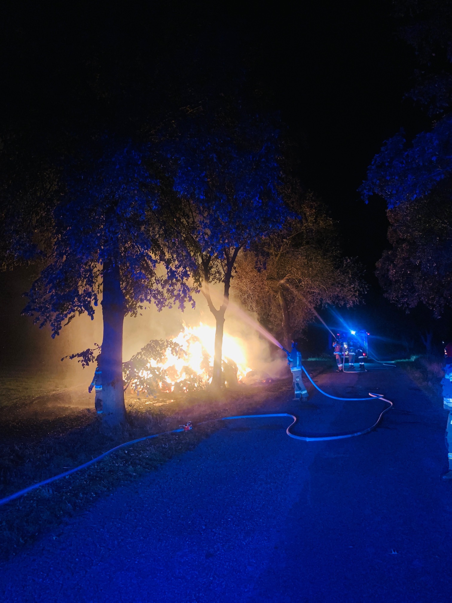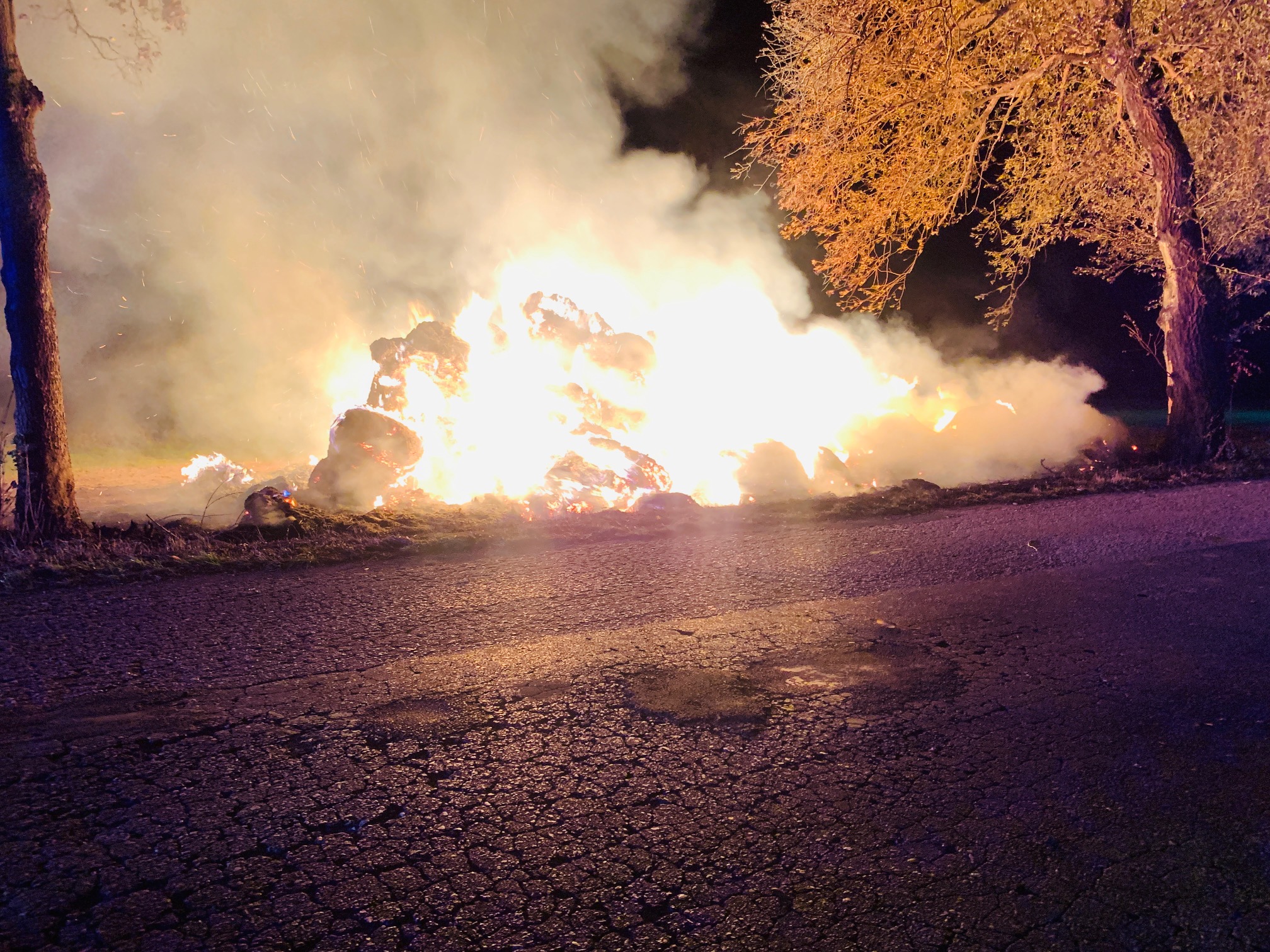 Po przybyciu na miejsce zdarzenia zastano stóg słomy przy drodze powiatowej, objęty w całości ogniem oraz nadpalone drzewo.