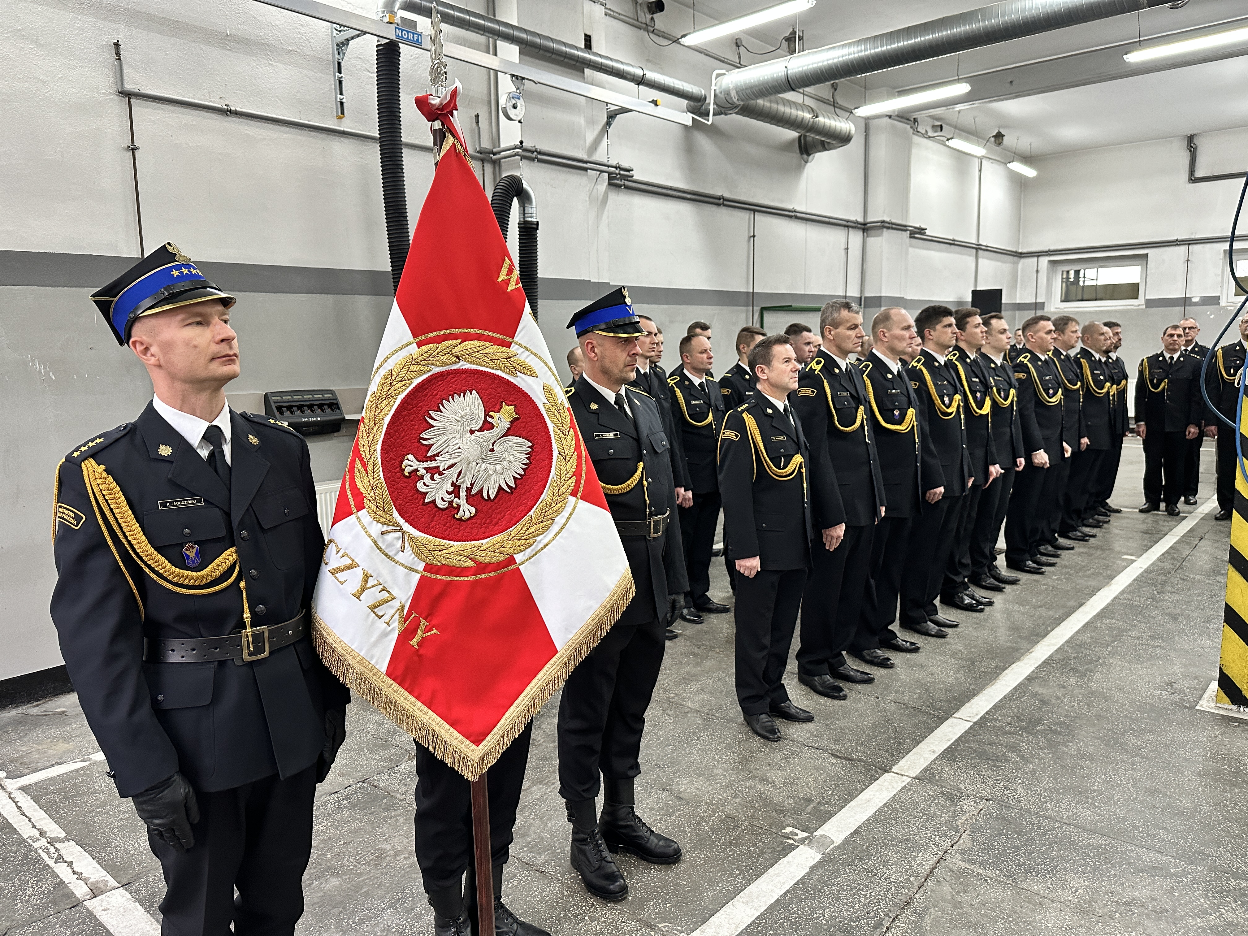 Uroczystość rozpoczęła się od złożenia meldunku przez dowódcę uroczystości mł. bryg. Łukasza Rogalskiego p.o. Kujawsko-Pomorskiego Komendanta Wojewódzkiego Państwowej Straży Pożarnej st. bryg. Sławomirowi Herbowskiemu. Następnie wprowadzono poczet sztandarowy Komendy oraz odśpiewano Hymn Państwowy.