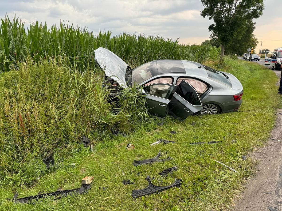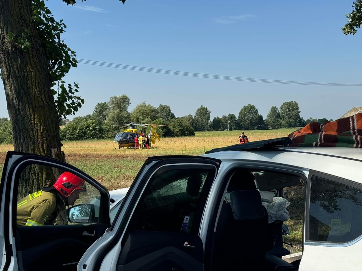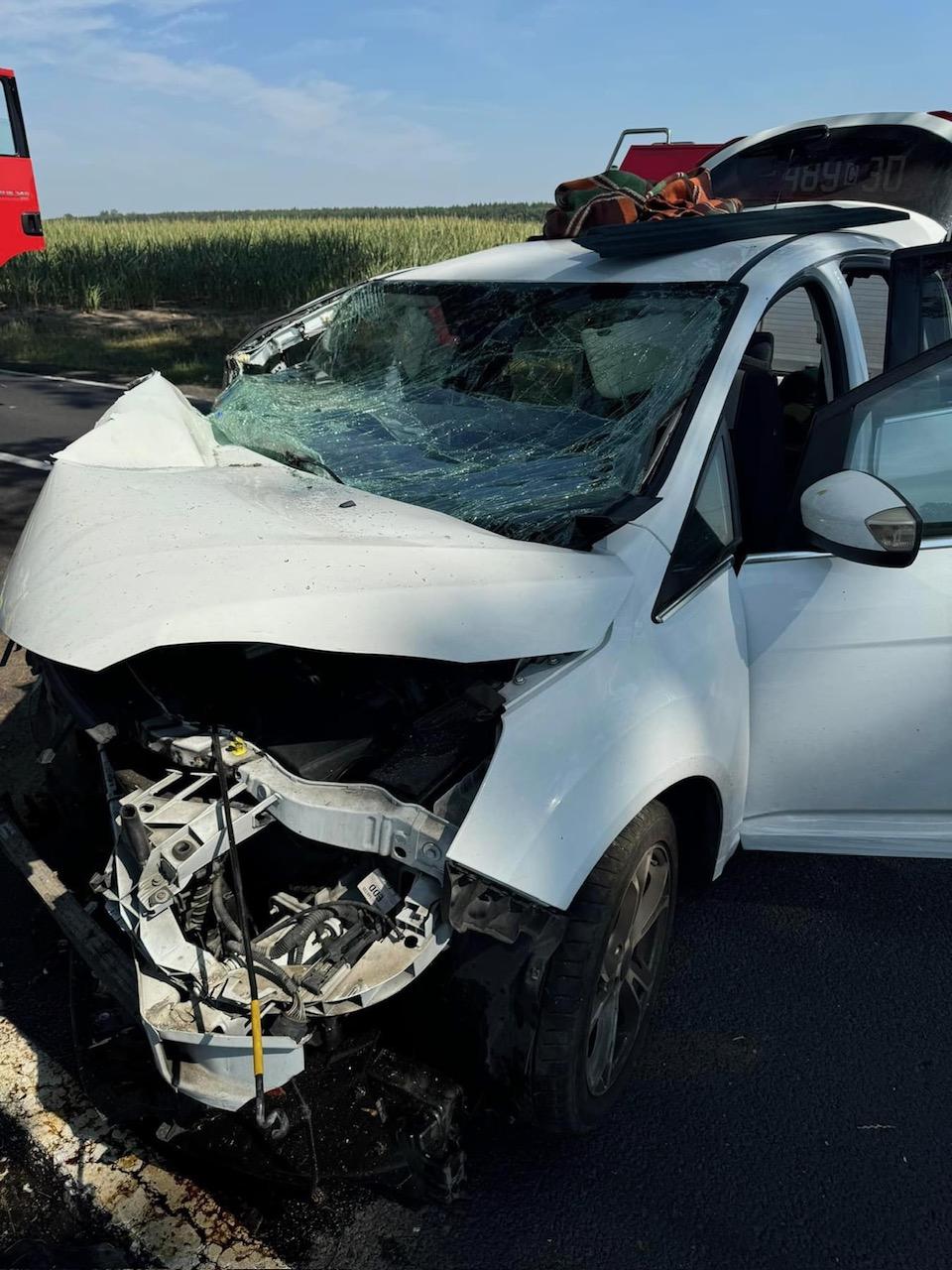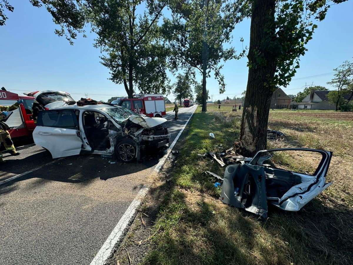 Pierwsze z nich miało miejsce ok. godz. 9:25 na DK25 w miejscowości Berlinek (gm. Jeziora Wielkie). Samochód osobowy uderzył w przydrożne drzewo. Samochodem podróżowały 4 osoby. 3 z nich w chwili przybycia zastępów straży pożarnej znajdowały się poza pojazdem. Strażacy przy wsparciu ZRM ewakuowali z auta pasażera, który w wyniku zderzenia doznał złamania kości kończyny dolnej. Jednocześnie udzielano pomocy wszystkim podróżującym osobom. Wszyscy poszkodowani zostali przekazani ZRM. 3 z nich trafiło do szpitali. Na miejsce przybył śmigłowiec LPR, który zabrał pasażera ze złamaną nogą. Jedna osoba po przebadaniu przez ratowników medycznych odmówiła transportu do szpitala. Na czas działań DK25 była całkowicie zablokowana. Strażacy po czynnościach technika policji uprzątnęli z jezdni pozostałości powypadkowe.
