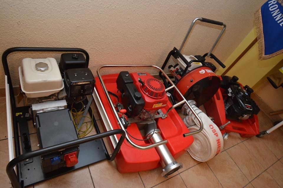 Sprzęt o jaki wzbogaciła się Ochotnicza Straż Pożarna w Niestronnie to m.in.: agregat prądotwórczy, motopompa pływająca Mamut, motopompa pływająca Niagara 2, wentylator oddymiający, aparat ODO MSA wraz z maską, sygnalizator bezruchu, hełmy strażackie -12szt., latarki do hełmów, ubrania specjalne - 5 kpl., rękawice techniczne, prądownica Turbo, kominiarki strażackie, defibrylator automatyczny, rozdzielacz kulowy 110/75/75, wąż tłoczny W-110.