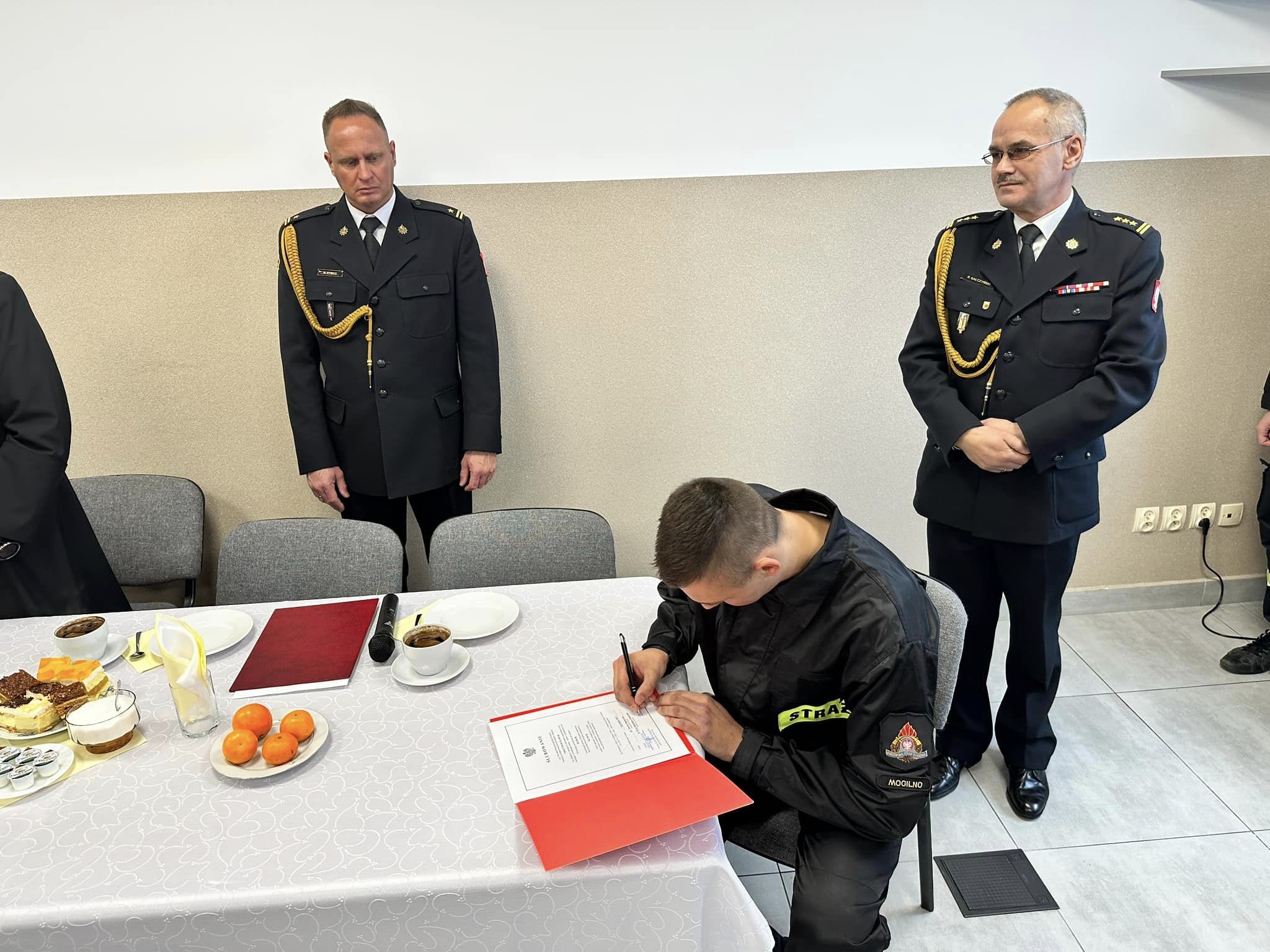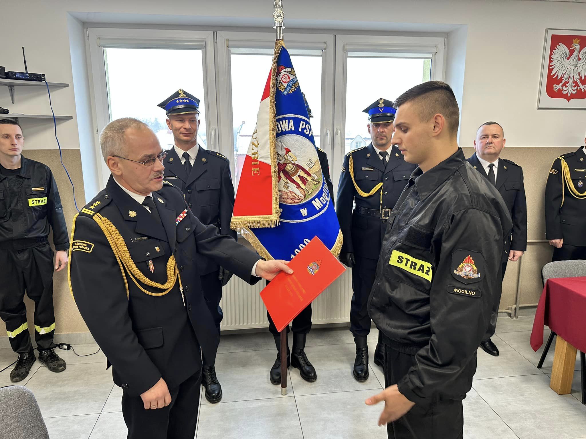 W dniu 8 grudnia 2023 roku w Komendzie Powiatowej Państwowej Straży Pożarnej w Mogilnie odbyło się spotkanie świąteczne połączone z uroczystym ślubowaniem strażaka.