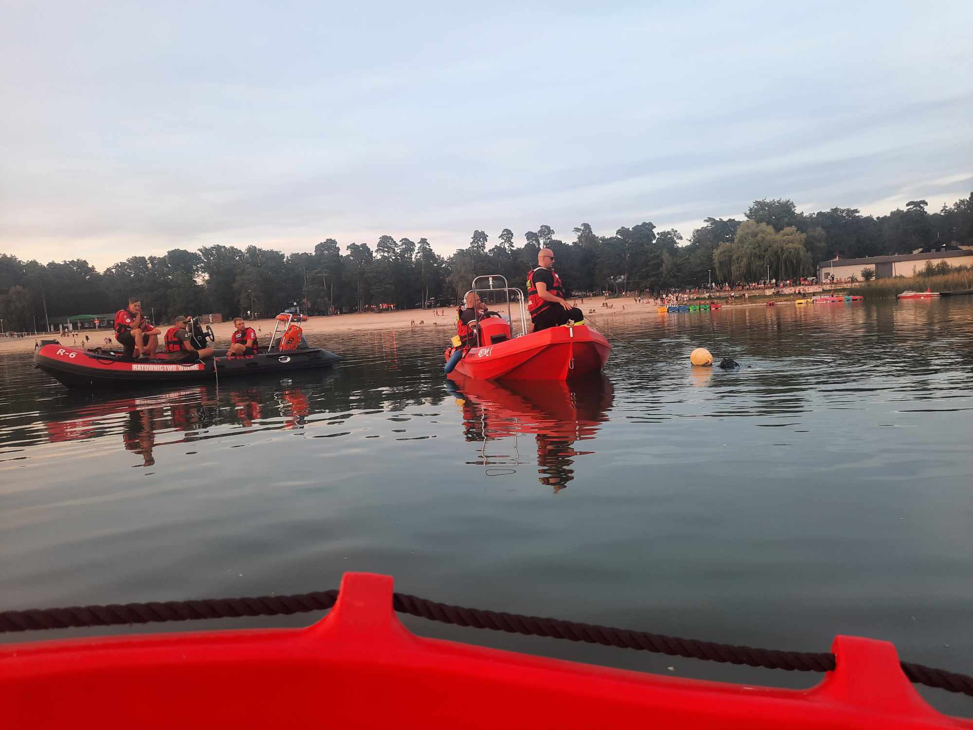 Poprzez dyspozyjce Dyżurnego Operacyjnego Województwa Kujawsko-Pomorskiego dla SK KM Włocławek, na miejsce zdarzenia przybyła SGRW-N ,,Włocławek'', która po zapoznaniu się z sytuacją podjęła decyzję, o przeszukaniu miejsc wyznaczonych przez płetownurka. Przy pierwszym zejściu pod wodę płetwonurek potwierdził na dnie jeziora ciało mężczyzny, które zostało wydobyte na powierzchnię wody a następnie przy użyciu deski ortopedycznej i łodzi przetransportowane na brzeg jeziora. Ciało zostało zidentyfikowane przez obecną na miejscu zdarzenia rodzinę. Około godz. 17:00 przybyły na miejsce lekarz potwierdzenił zgon mężczyzny.