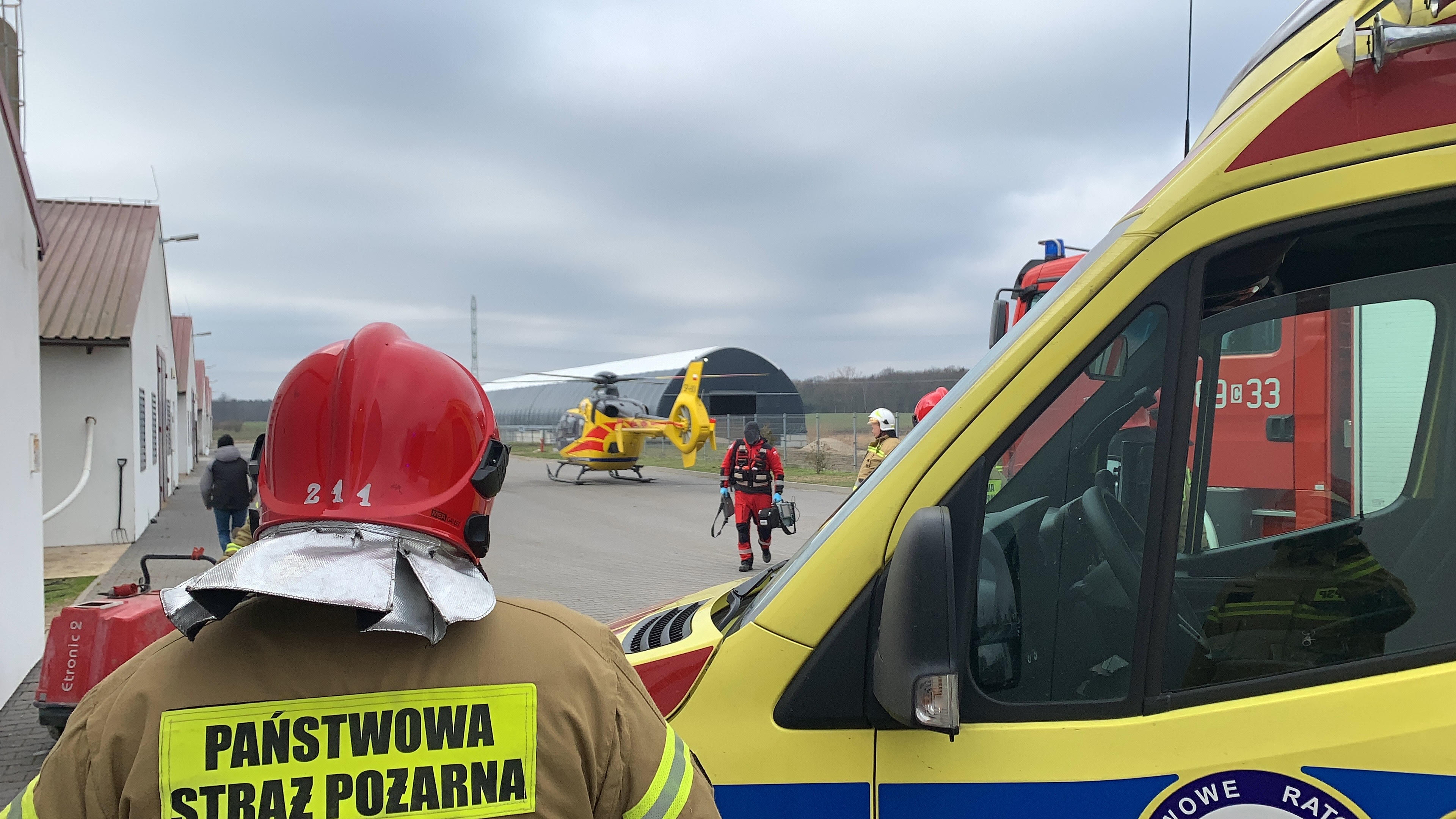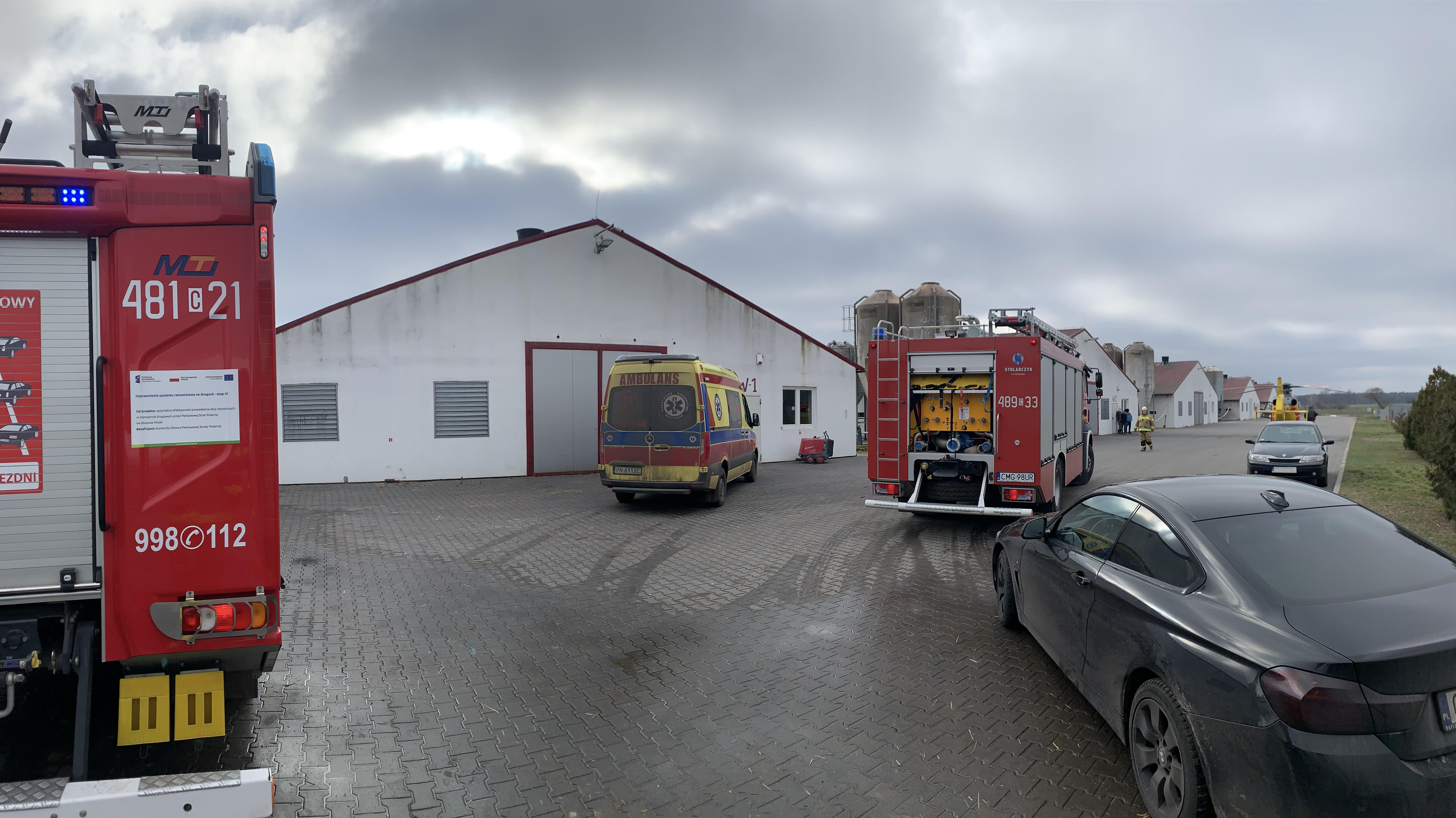 Strażacy zabezpieczyli miejsce zdarzenia oraz przystąpili do udzielenia kwalifikowanej pierwszej pomocy poszkodowanemu do przyjazdu Zespołu Ratownictwa Medycznego. U osoby poszkodowanej zdiagnozowano uraz miednicy oraz liczne złamania górnych i dolnych kończyn. Na miejsce zadysponowano Lotnicze Pogotowie Ratunkowe z bazy HEMS w Bydgoszczy. Poszkodowany został przetransportowany do szpitala w Bydgoszczy. W trakcie akcji ratowniczej na miejsce zdarzenia dojechała policja.