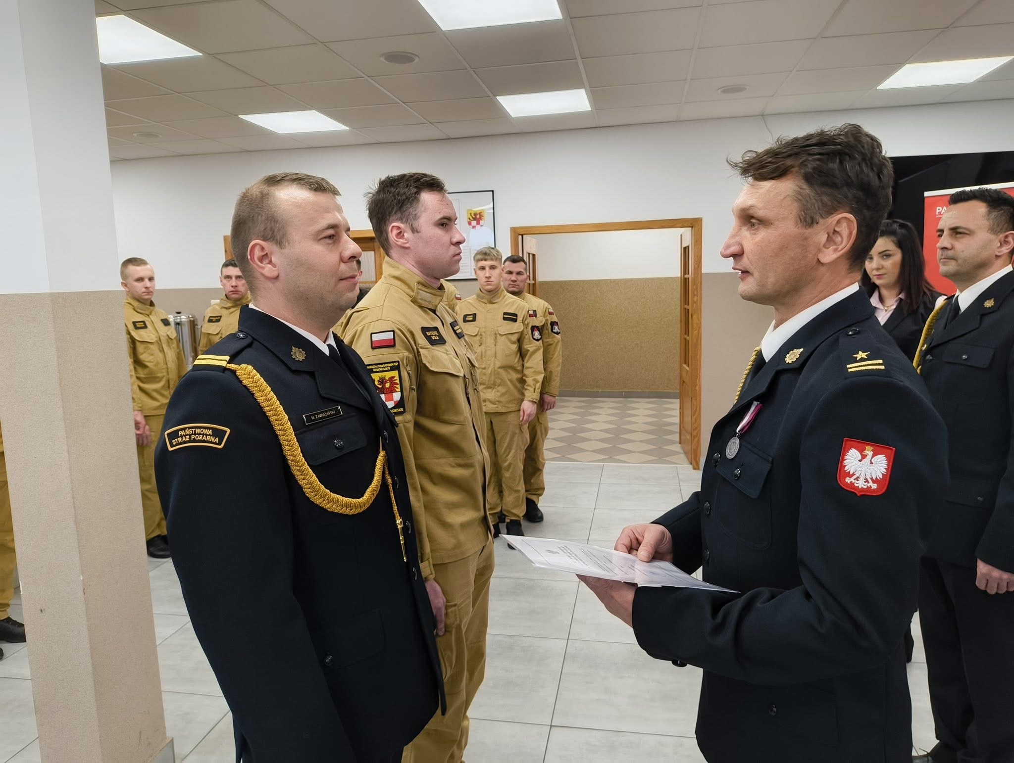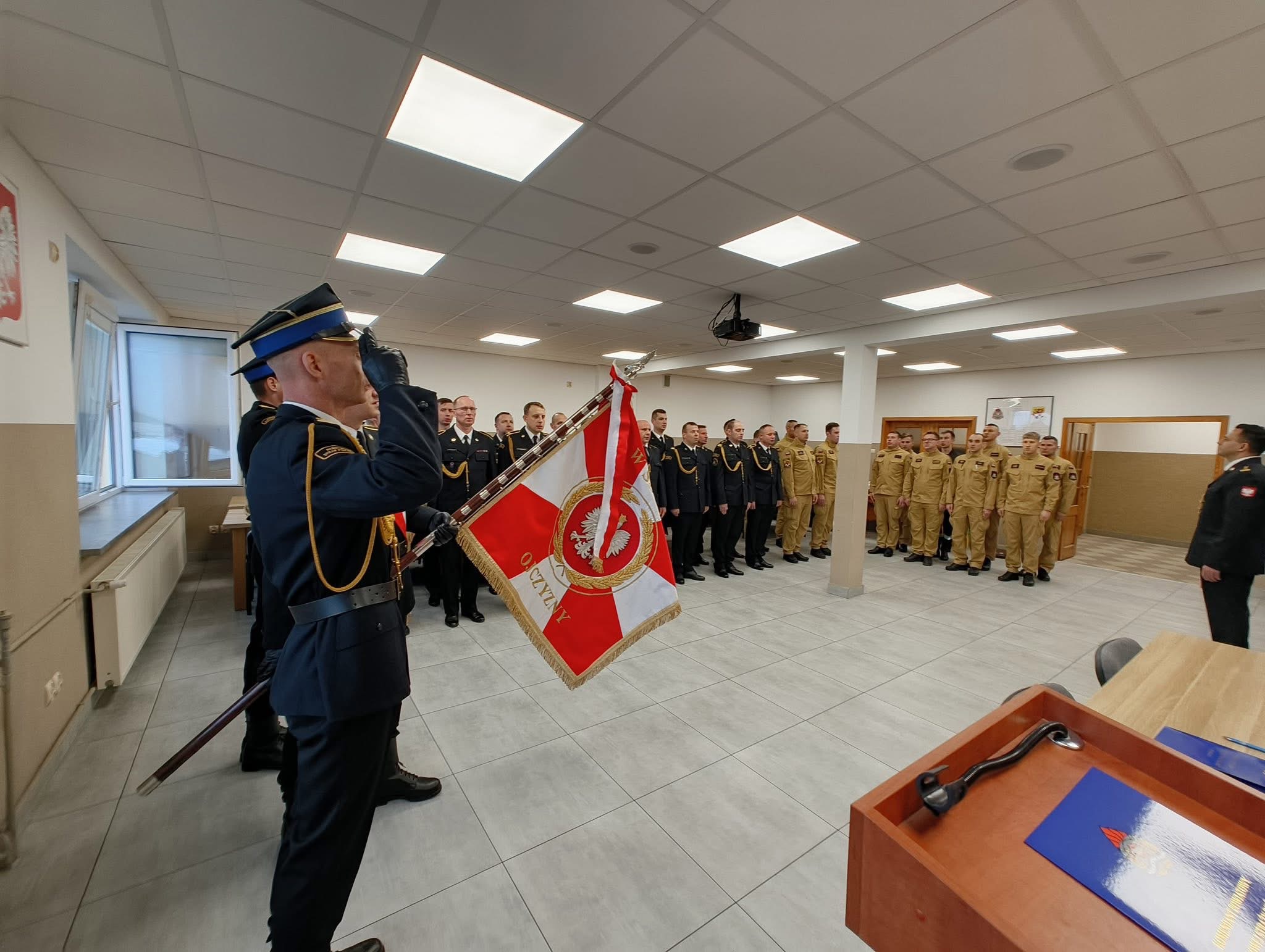 4 grudnia 2025 r. w sali konferencyjnej Komendy Powiatowej Państwowej Straży Pożarnej w Mogilnie odbyła się uroczysta zbiórka z okazji Narodowego Święta Niepodległości, ślubowania strażaków, wręczenia aktów nadania wyższych stopni służbowych, awansów i nagród.