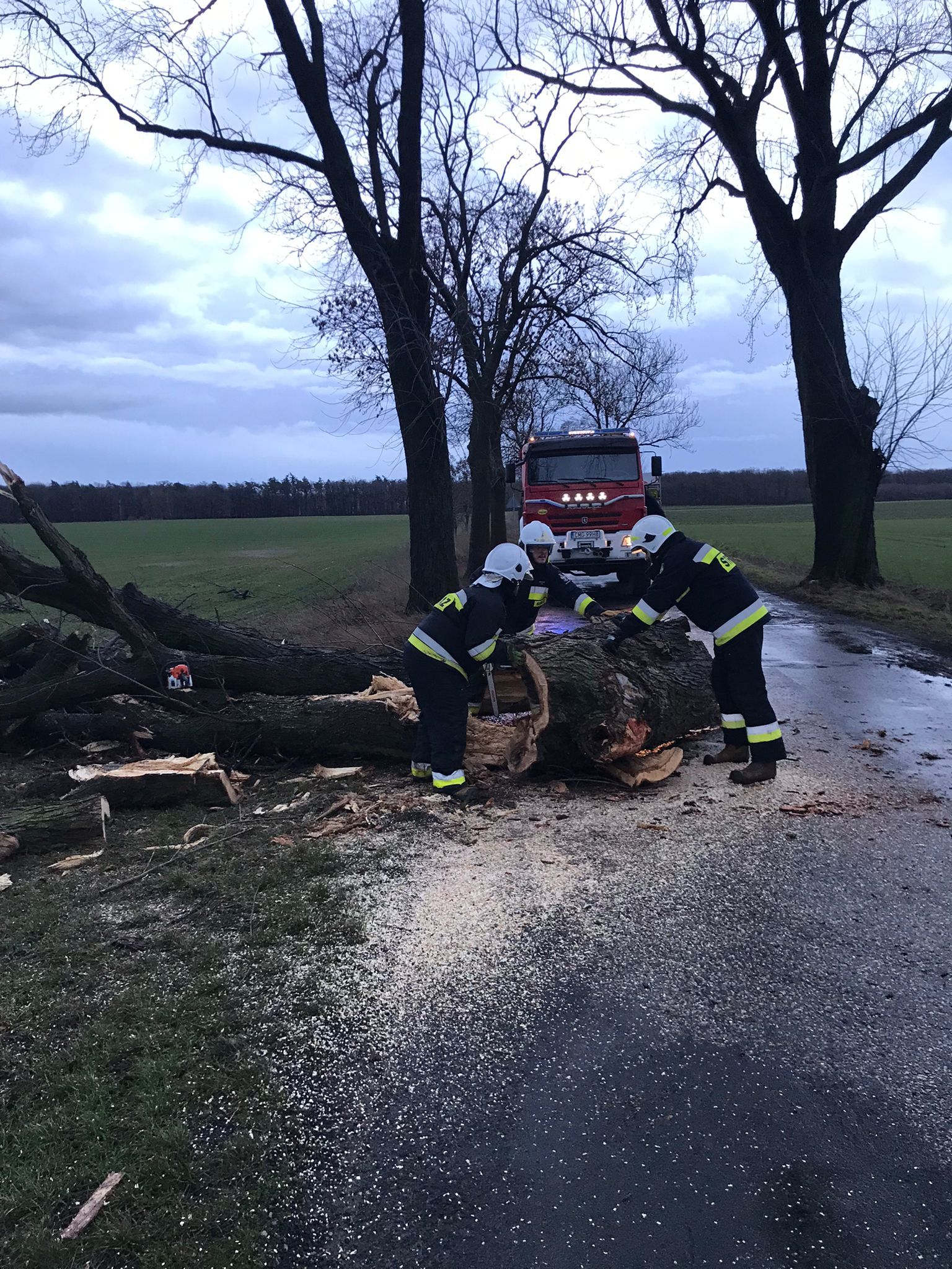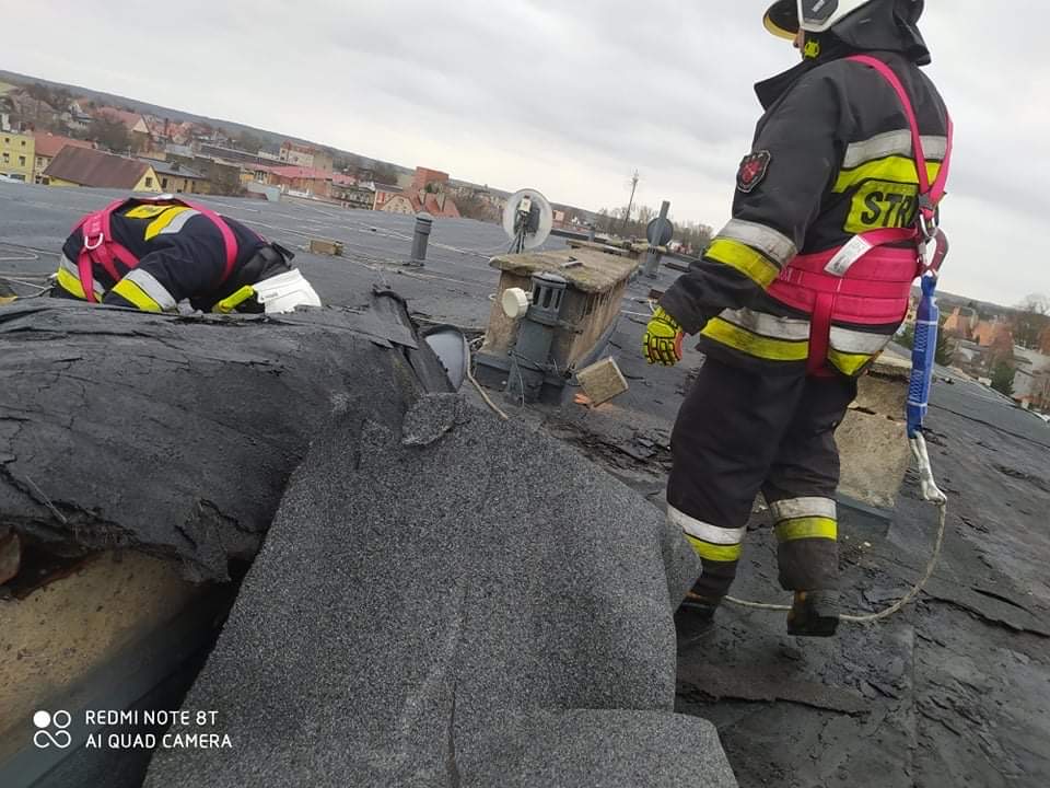 Najwięcej interwencji strażaków dotyczyło uszkodzonych dachów - 22 zdarzenia (najgroźniejsze w miejscowości Młyny, gdzie wiatr zerwał dach z budynku gospodarczego a także uszkodził dach budynku mieszkalnego tej samej posesji). Wiatr łamał także drzewa, które upadając zrywały linie energetyczne.