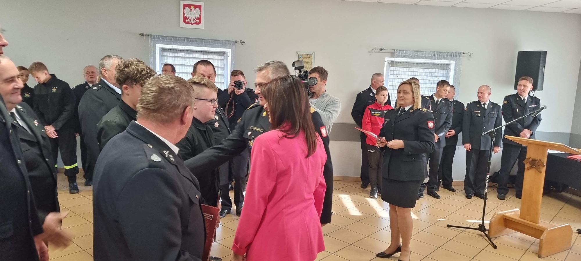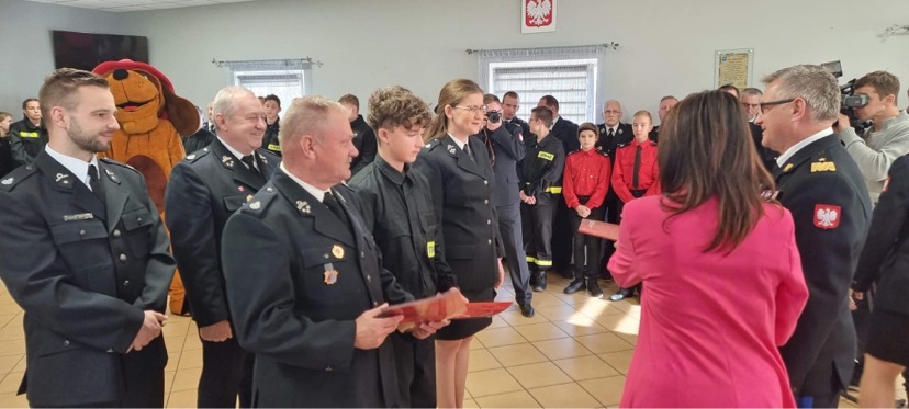 Promesy wręczali: Poseł na Sejm RP Ewa Kozanecka oraz Kujawsko-Pomorski Komendant Wojewódzki PSP nadbryg. Jacek Kaczmarek w obecności wicewojewody Radosława Kempińskiego, samorządowców oraz przedstawicieli OSP i PSP.
