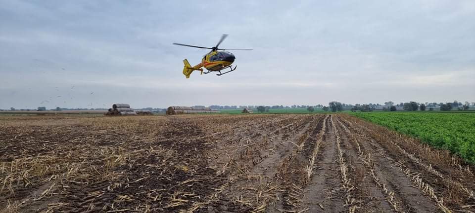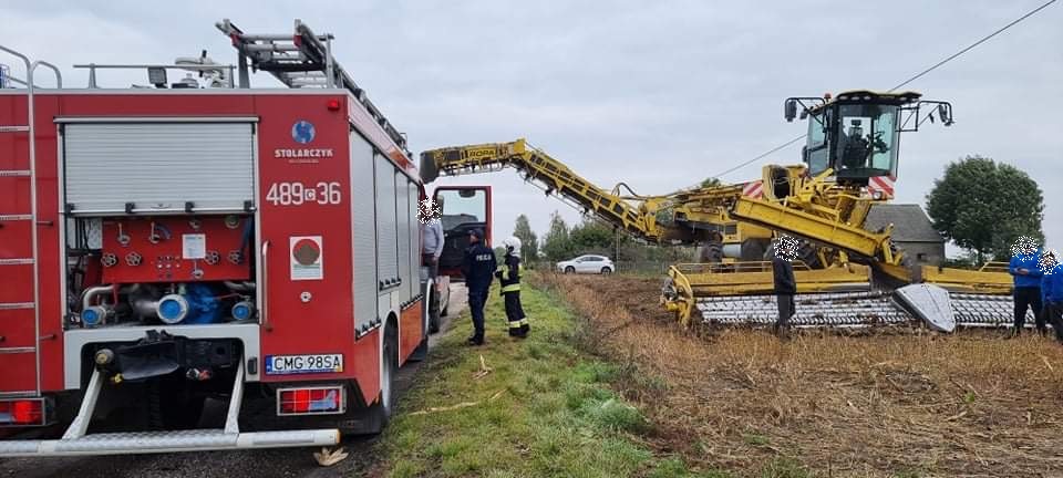 15 października 2021 r. (wtorek) ok. godz. 10:53 do dyżurnego Stanowiska Kierowania Komendanta Powiatowego Państwowej Straży Pożarnej w Mogilnie wpłynęło zgłoszenie o wypadku podczas prac polowych w Mirosławicach (gm. Strzelno).