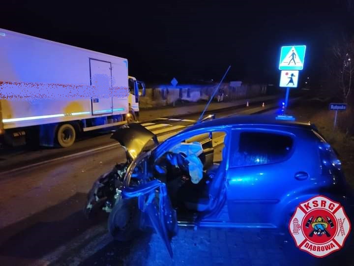 Zderzenie samochodu osobowego z dostawczym w Dąbrowie