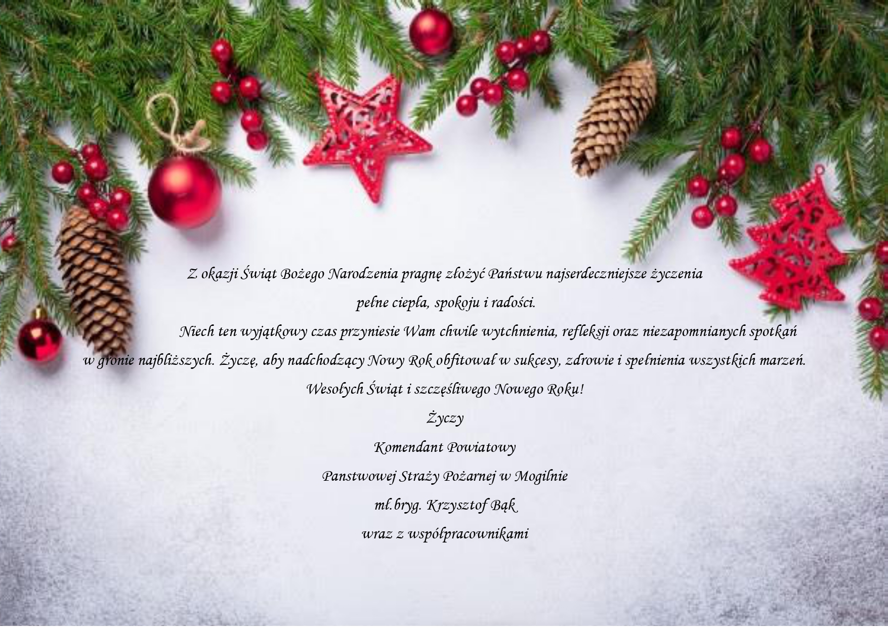 Życzenia Komendanta Powiatowego PSP w Mogilnie z okazji Świąt Bożego Narodzenia