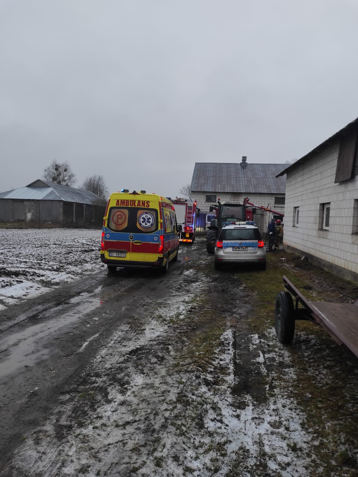 15.01.2025 r. w godzinach popołudniowych do Stanowiska Kierowania Komendanta Powiatowego PSP w Mońkach wpłynęła informacja, że w Kalinówce Królewskiej, gm. Jasionówka w silosie zbożowym został przysypany mężczyzna. Do akcji zostali zadysponowani strażacy z Jednostki Ratowniczo-Gaśniczej w Mońkach oraz Ochotniczej Straży Pożarnej w Jasionówce. Przy użyciu specjalistycznych technik i sprzętu wydobyli zasypanego mężczyznę. Następnie na noszach ewakuowali go na zewnątrz i przekazali ZRM. Dzięki sprawnie przeprowadzonej akcji i dużemu wysiłkowi udało się uratować poszkodowanego. W działaniach trwających nieco ponad godzinę uczestniczyło łącznie 17 strażaków.